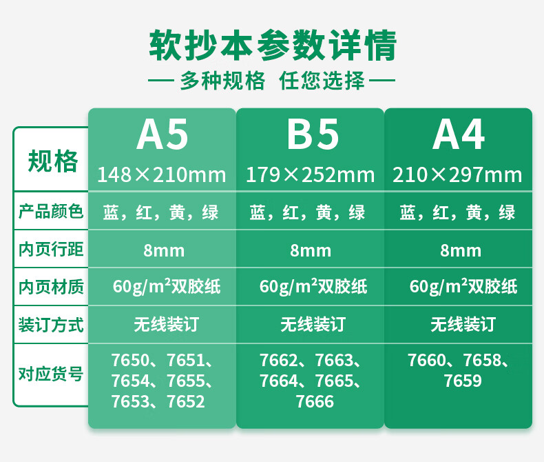 得力(deli) 无线胶装本软抄本 笔记本子【A5/50页】7652