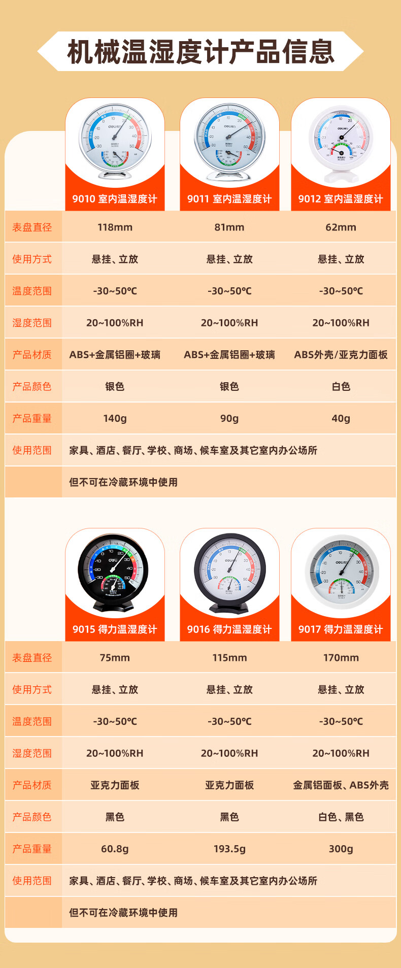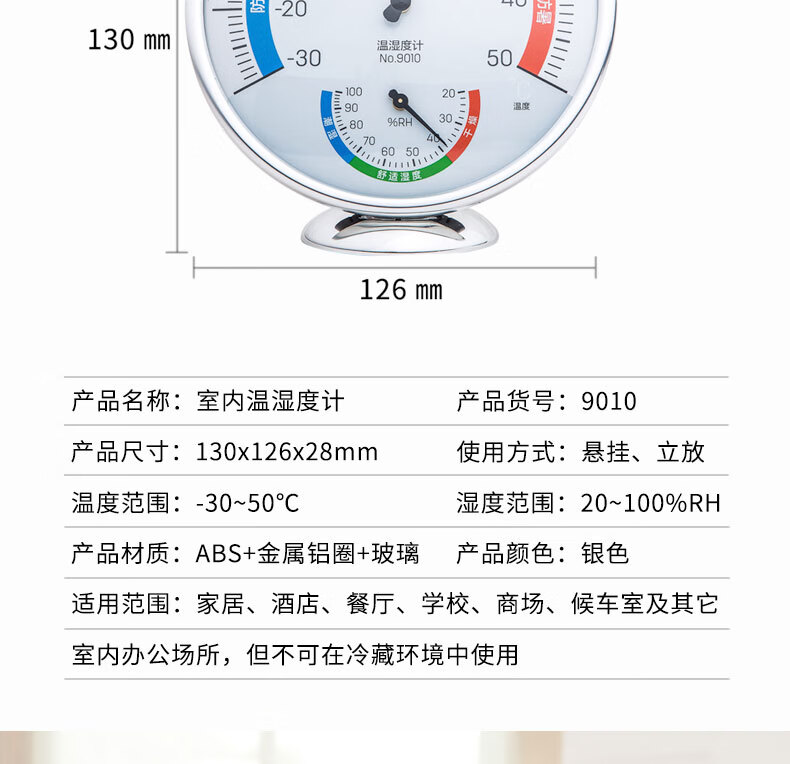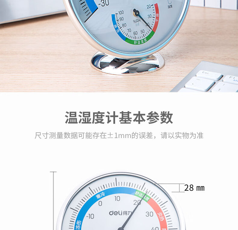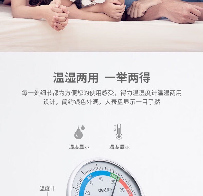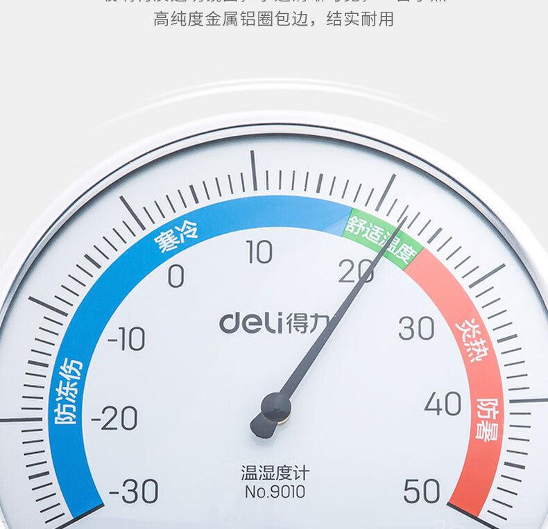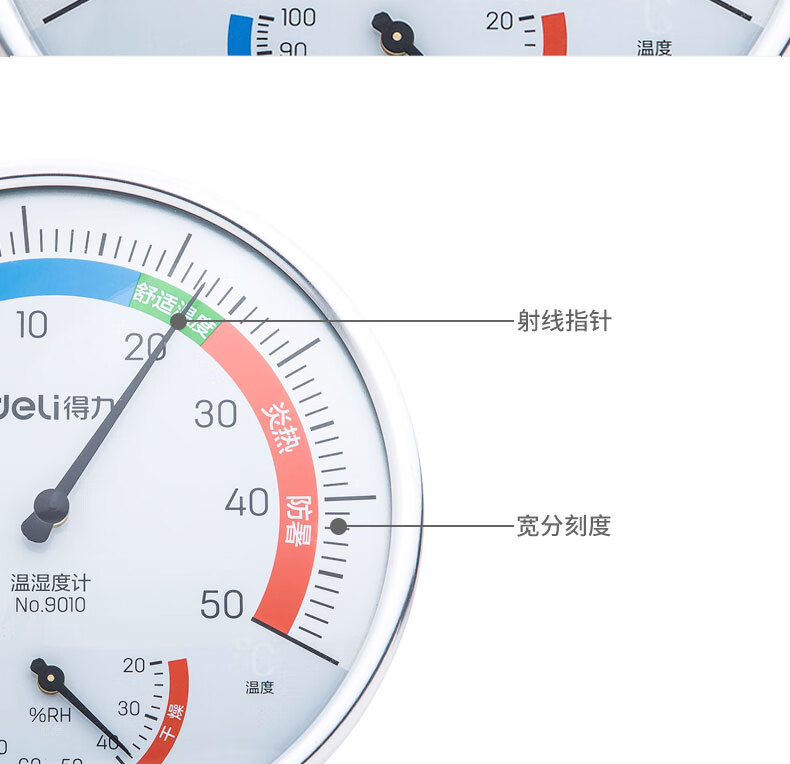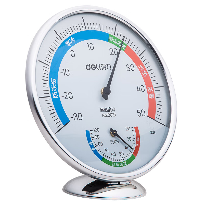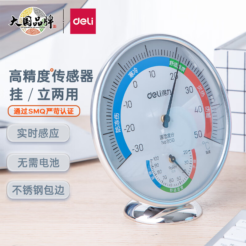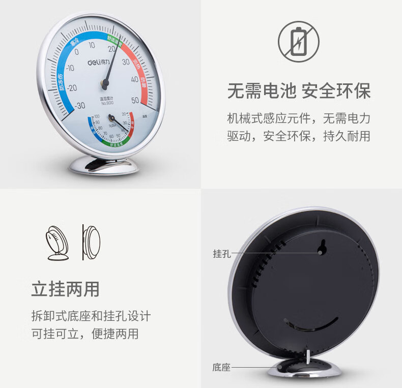 得力(deli)室内温湿度计大号 台式免电池大表盘9010