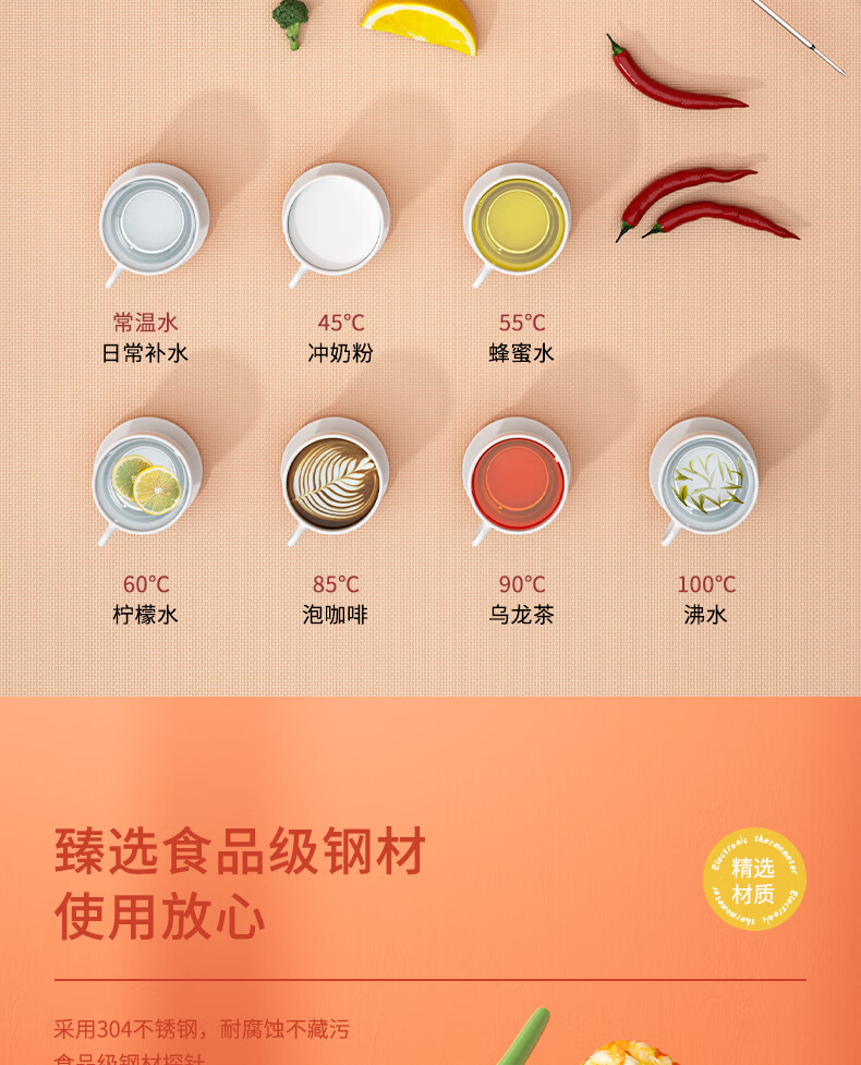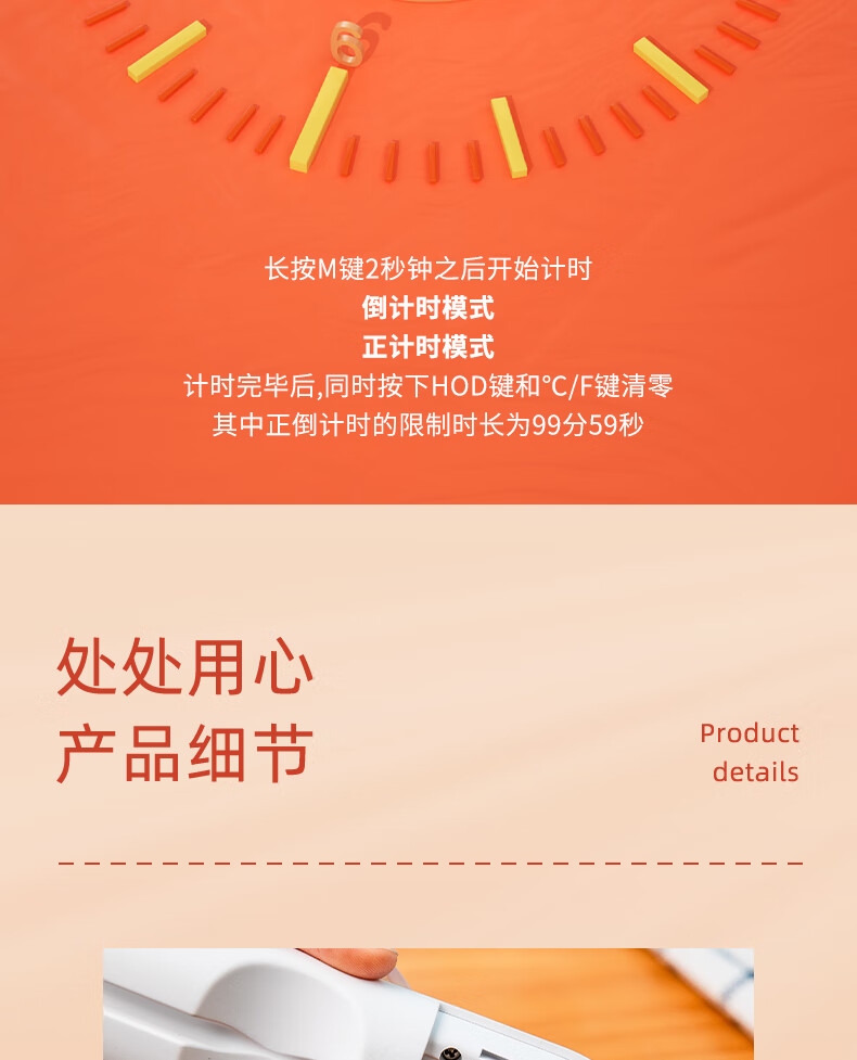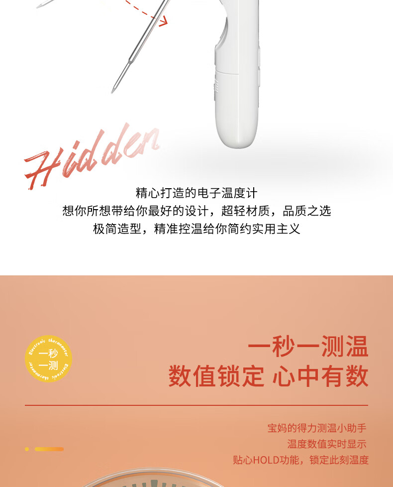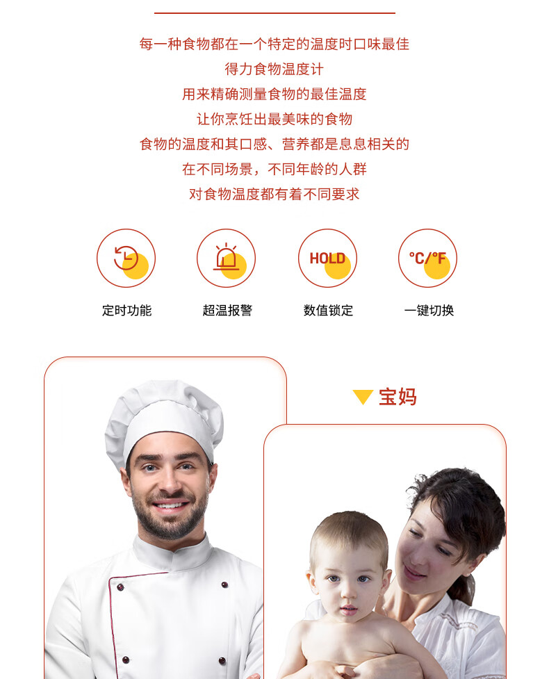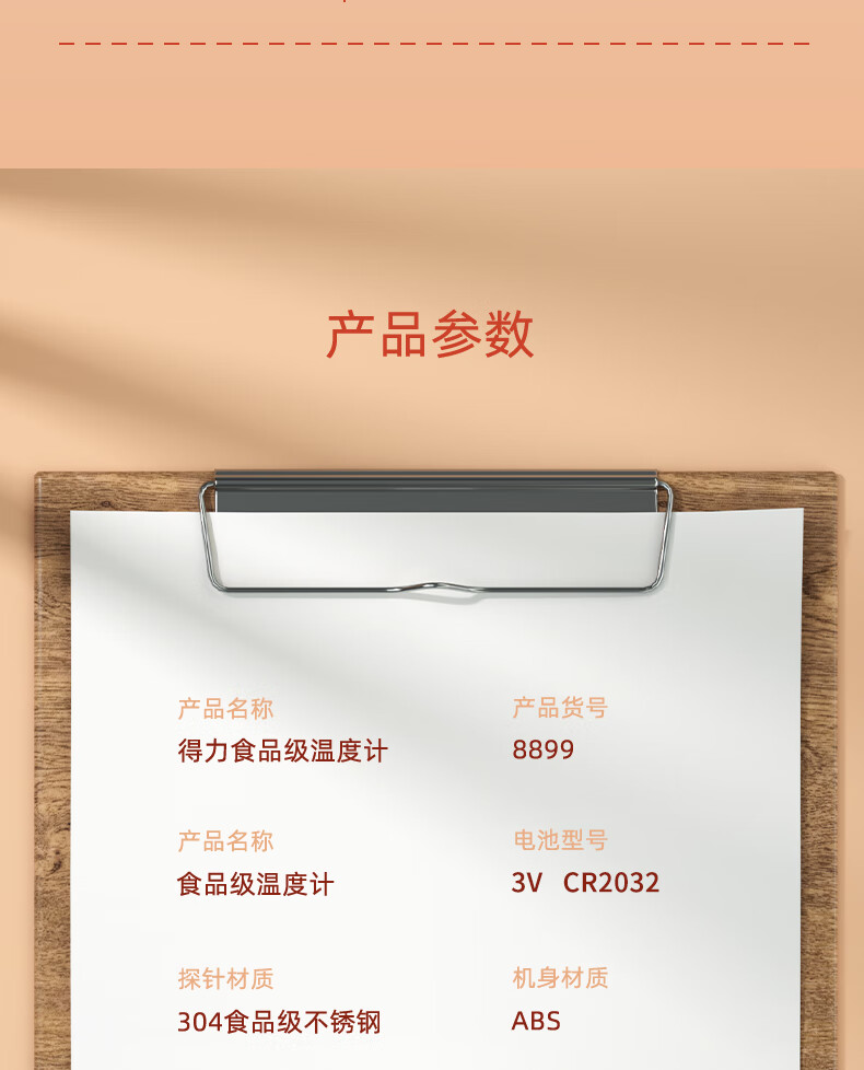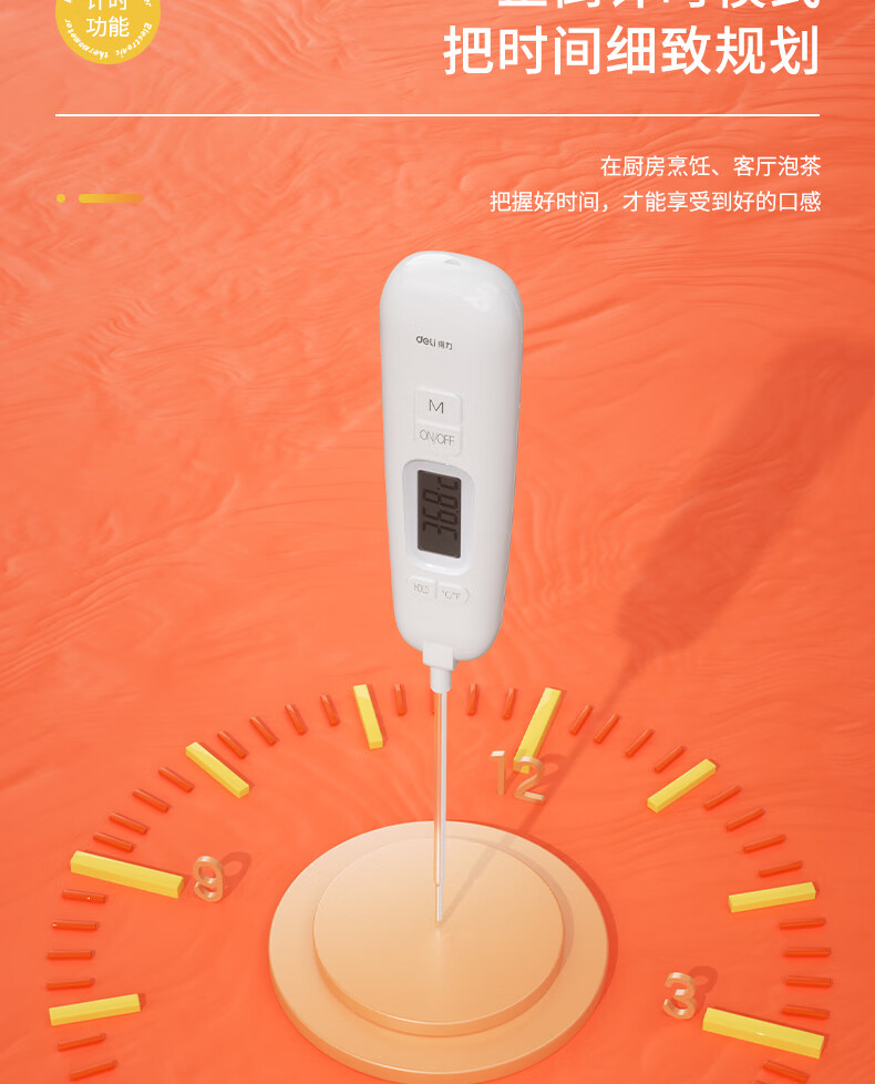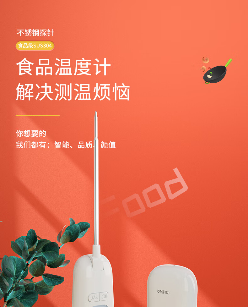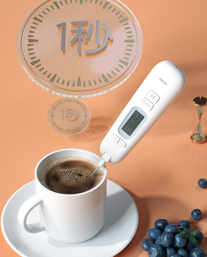 得力(deli)可折叠探针式 电子高精度温度计 白色8899