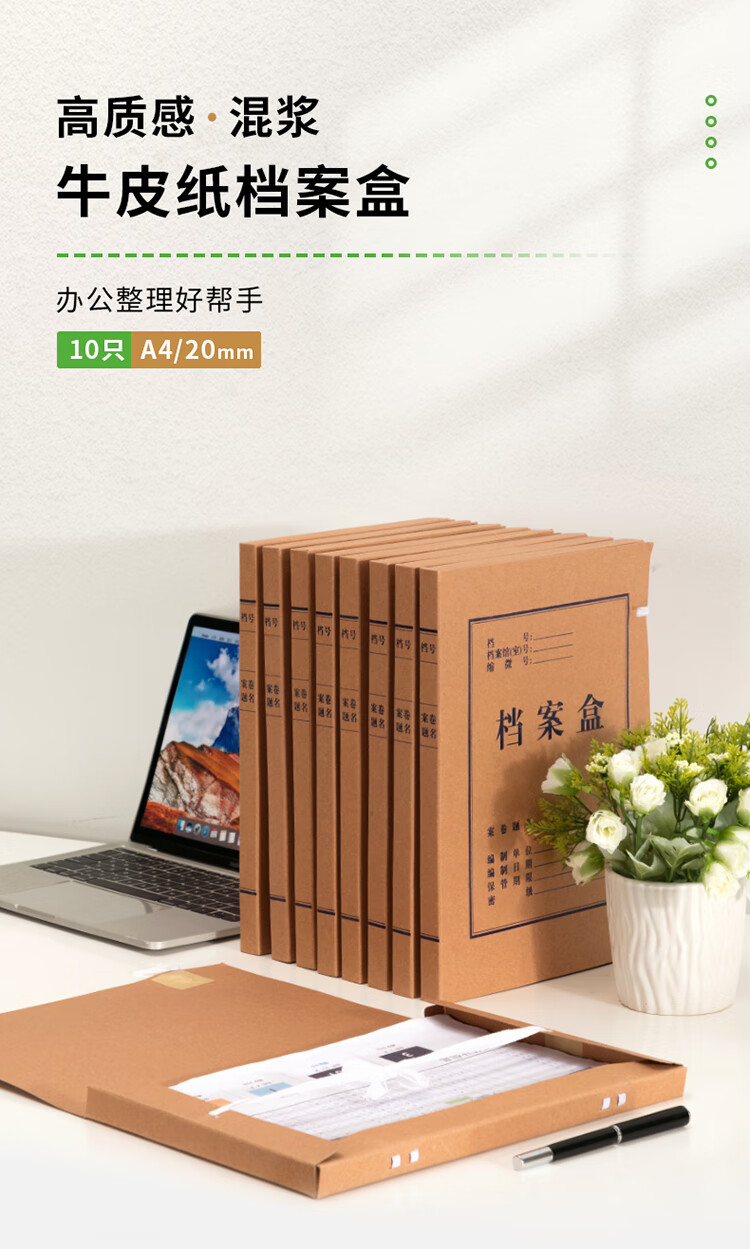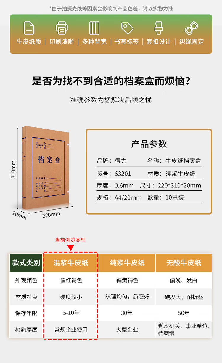 得力(deli)20mm混浆250g牛皮纸文件盒 档案盒 党建财务收纳盒10个装/组 63201