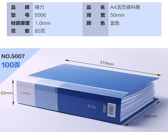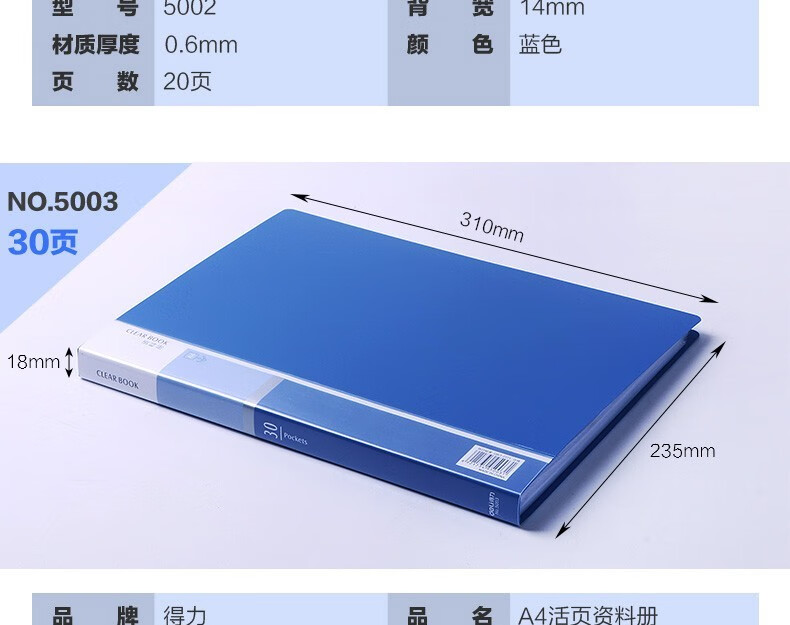 得力 20页资料册 资料夹 单个装33620