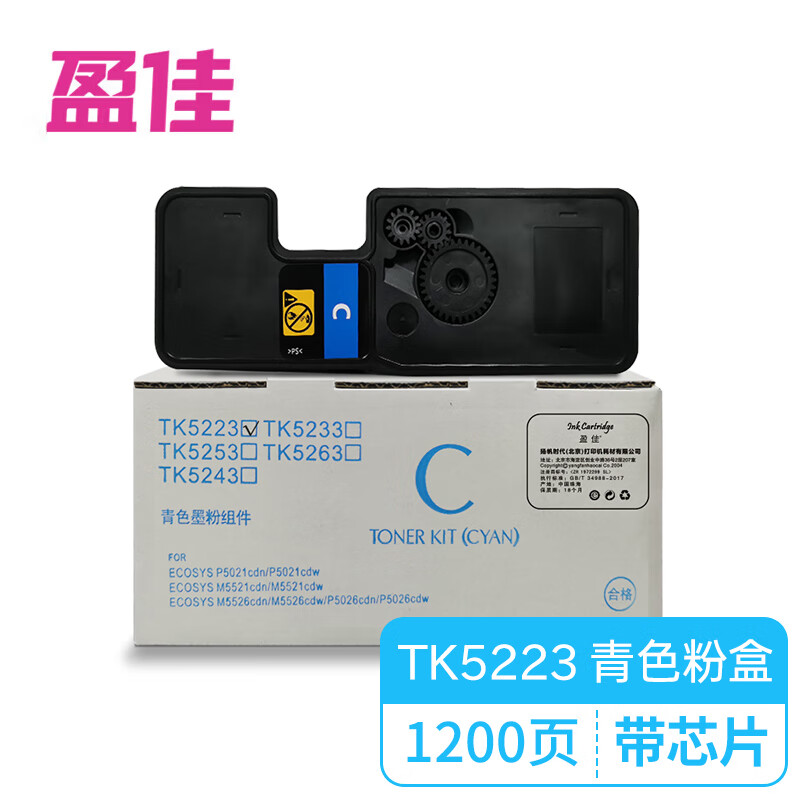 盈佳YJ KY-TK5223 带芯片 青色粉盒 适用京瓷Kyocera ECOSYS P5021cdn P5021cdW-商专版