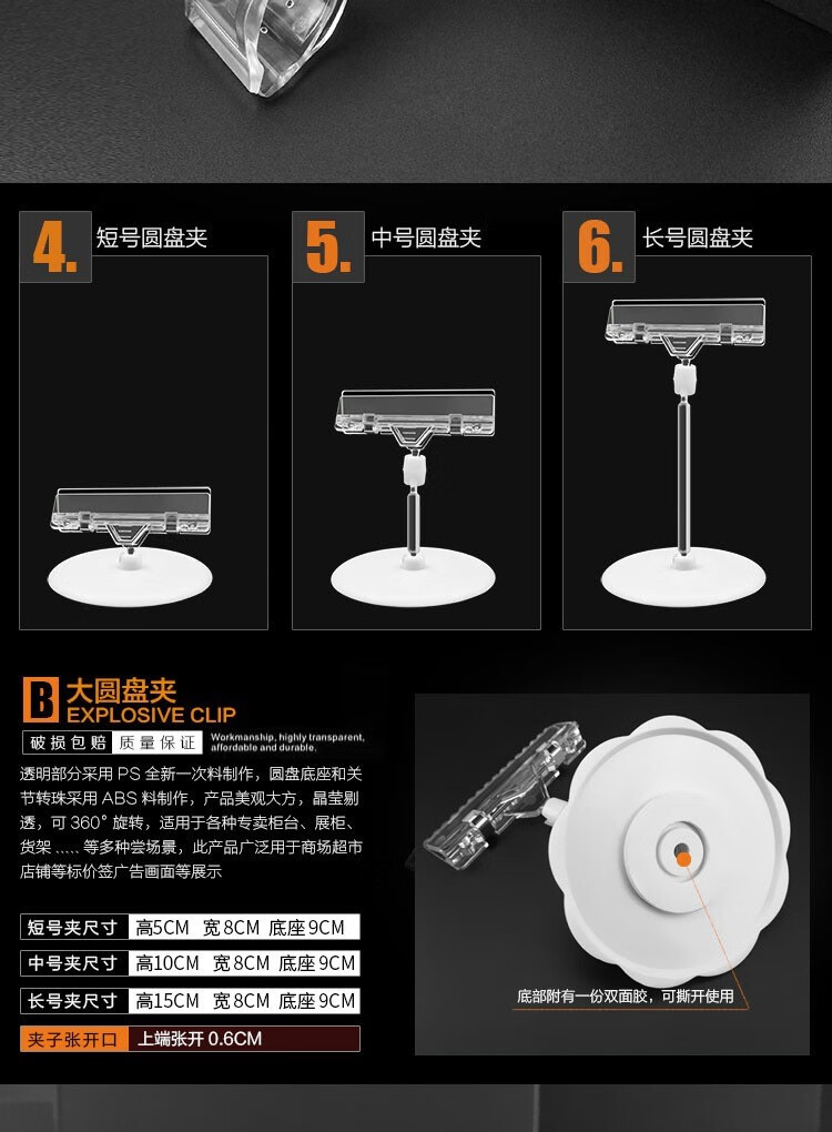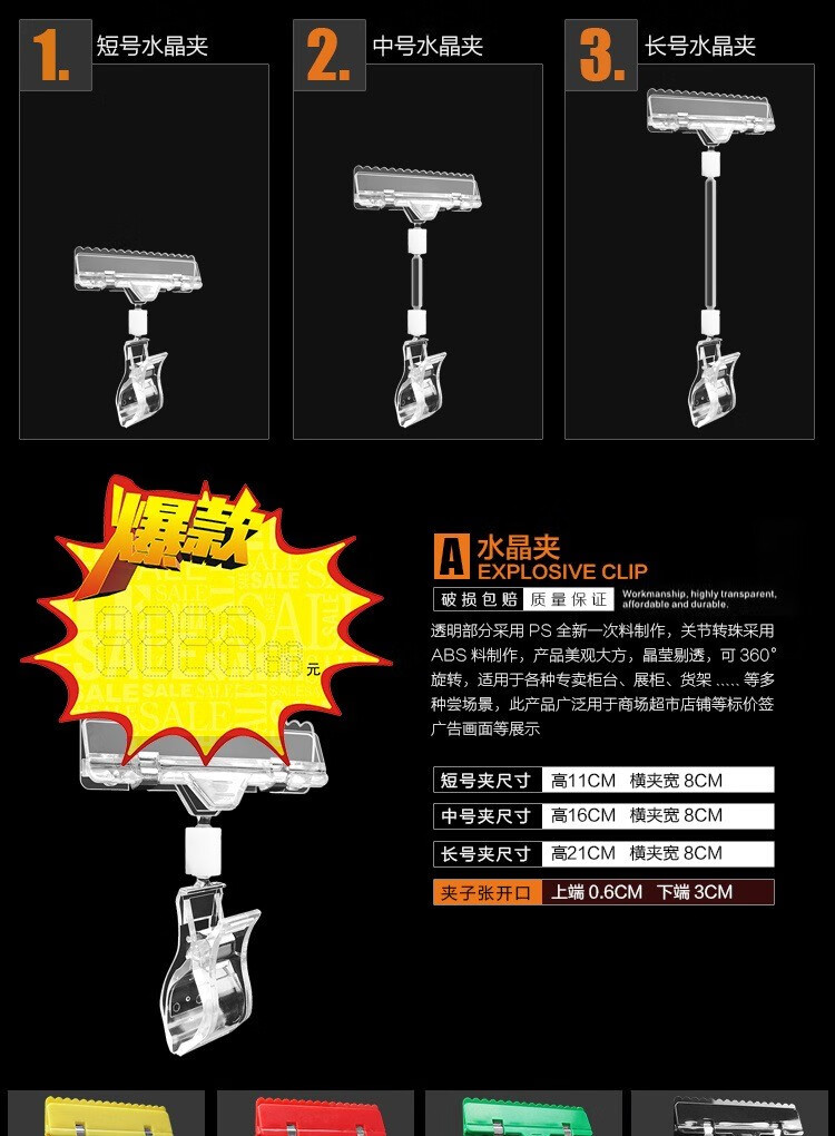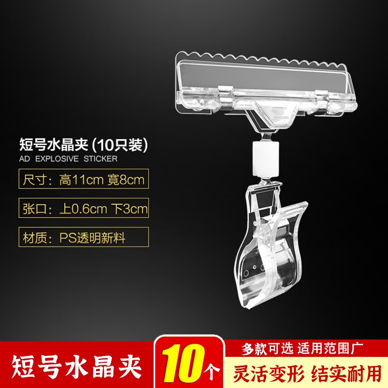 POP广告夹子爆炸贴夹拇指夹超市价格标签夹立式货架展示透明水晶夹双头夹 水晶夹-小号