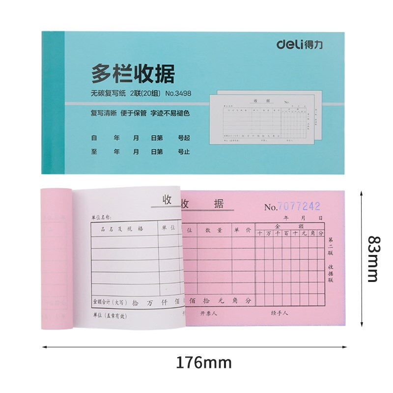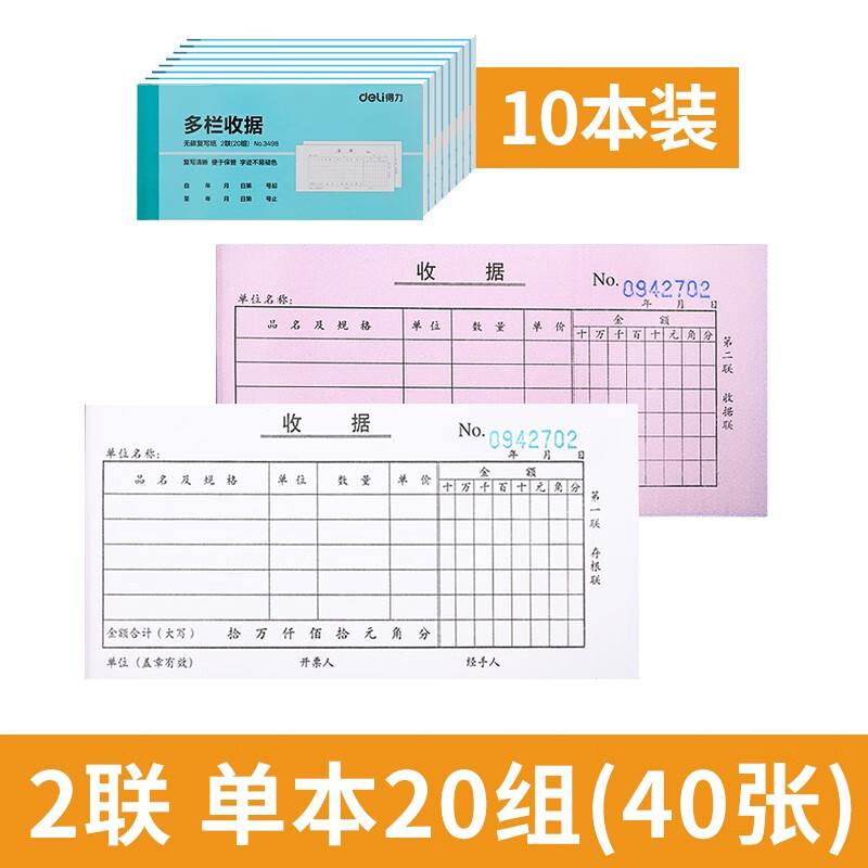 得力(deli) 二联无碳复写收据 (10本装)3498