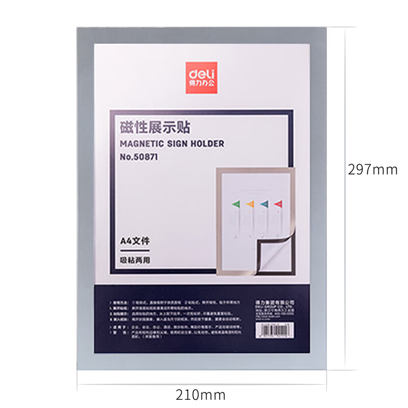 得力(deli)A4磁性展示贴 营业执照框 副本保护套文件框50871