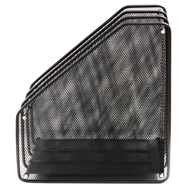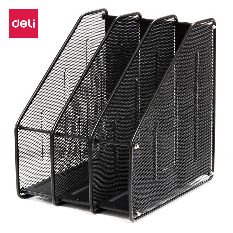 得力(deli)三联镂空金属网材杂文件框 A4文件座文件框黑色9197