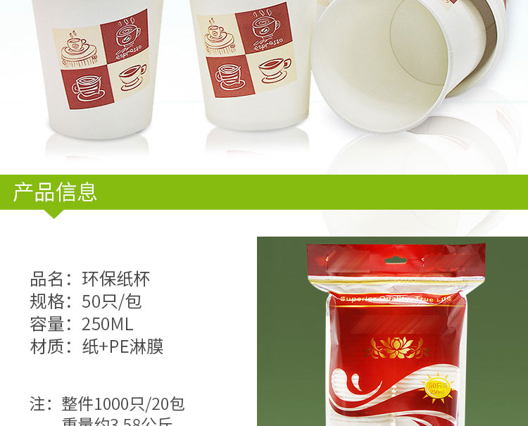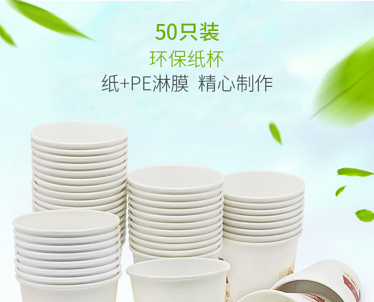 传美 一次性纸杯250mL 50只/袋 办公室商务家用清新素雅纸杯