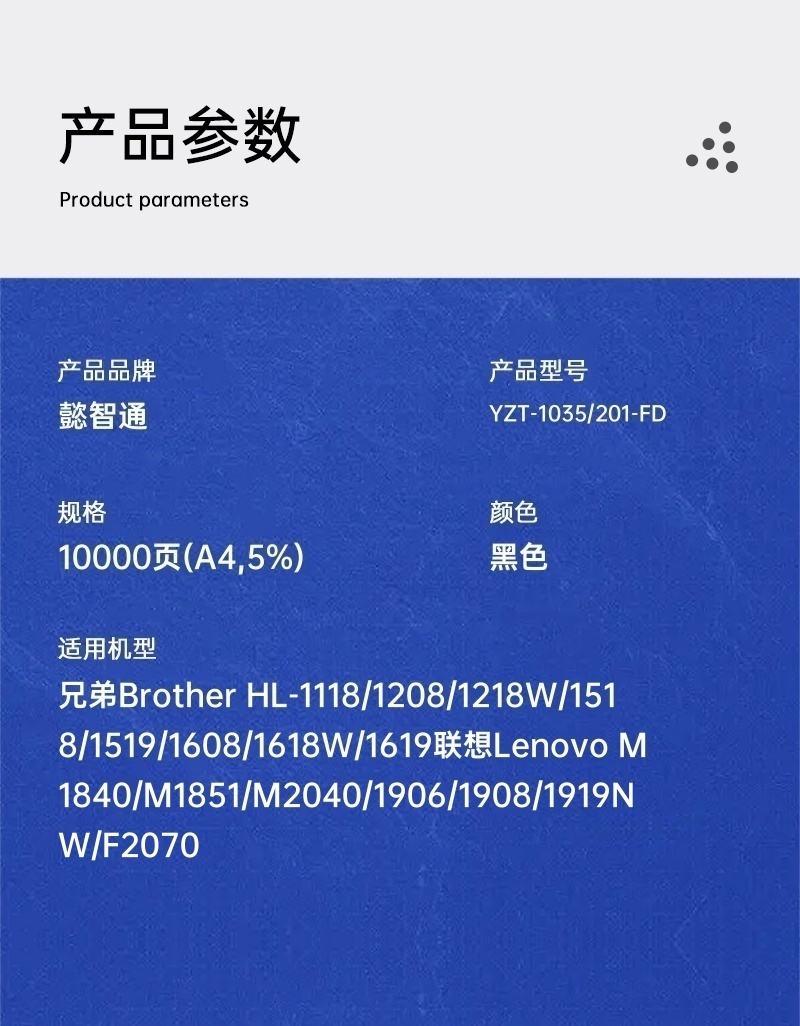 懿智通YZT DR1035/LD201分体鼓 适用于兄弟Brother HL-1118/1208/1218W/1518/1519/1608/1618W/1619