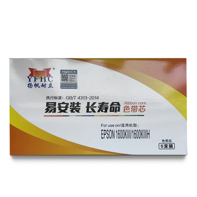 扬帆耐立 1600KⅢ/1600KⅢH 色带芯 5支装/盒 黑色 12.7mm*20m(右)*5适用于爱普生EPSON 1600KIIIH LQ2170 LQ1600KIII LQ690 675KT 680KII