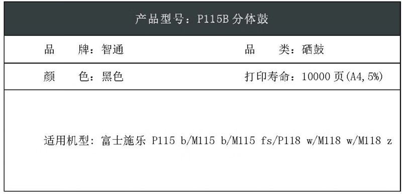 智通(ZT)P115B分体鼓 硒鼓 PLUS系列 黑色 适用富士施乐 P115 M118 z