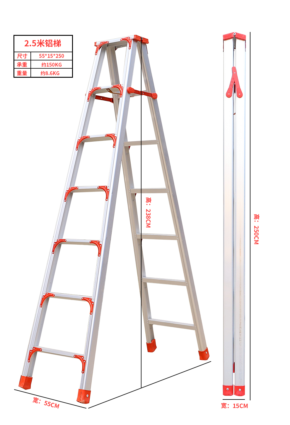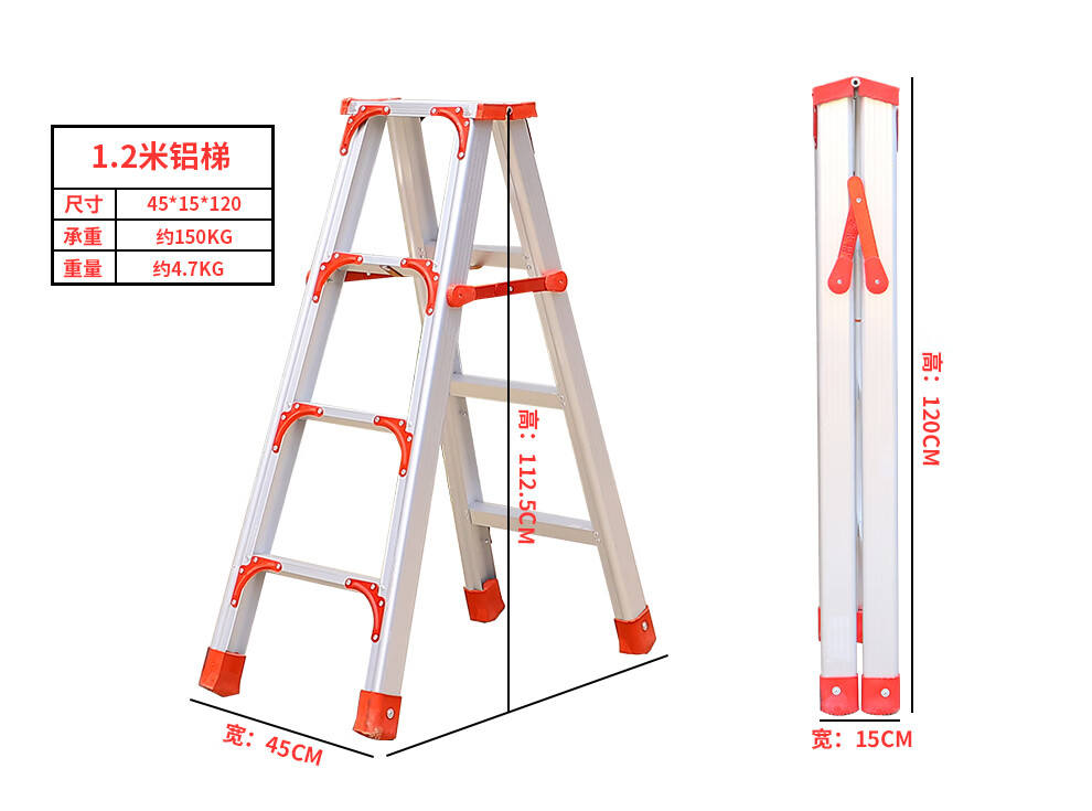 齐鲁安然 1.5米铝合金梯子 人字梯 工程梯 仓库梯具