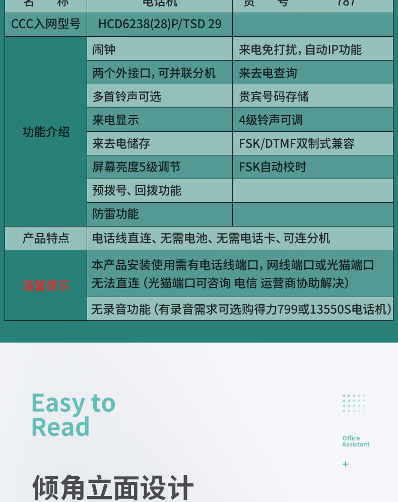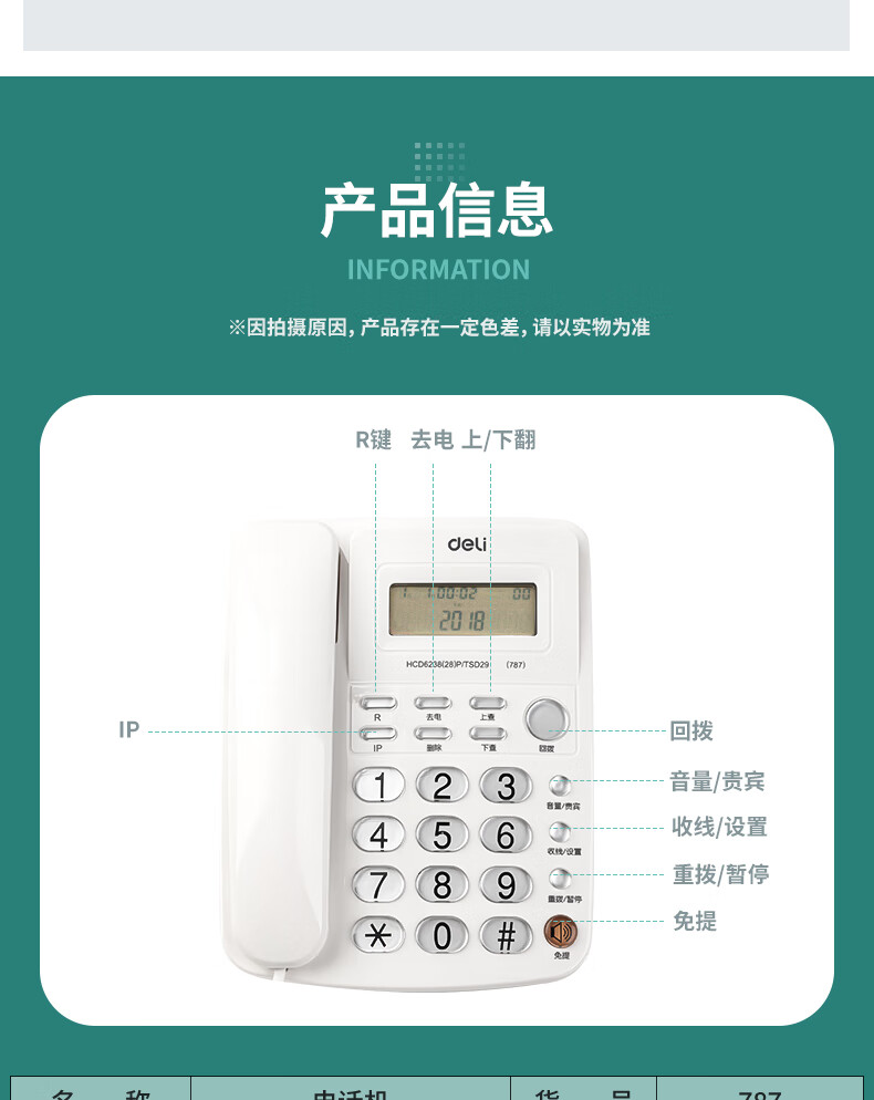 得力(deli)电话机座机 大容量存储 防雷抗电磁干扰 787白