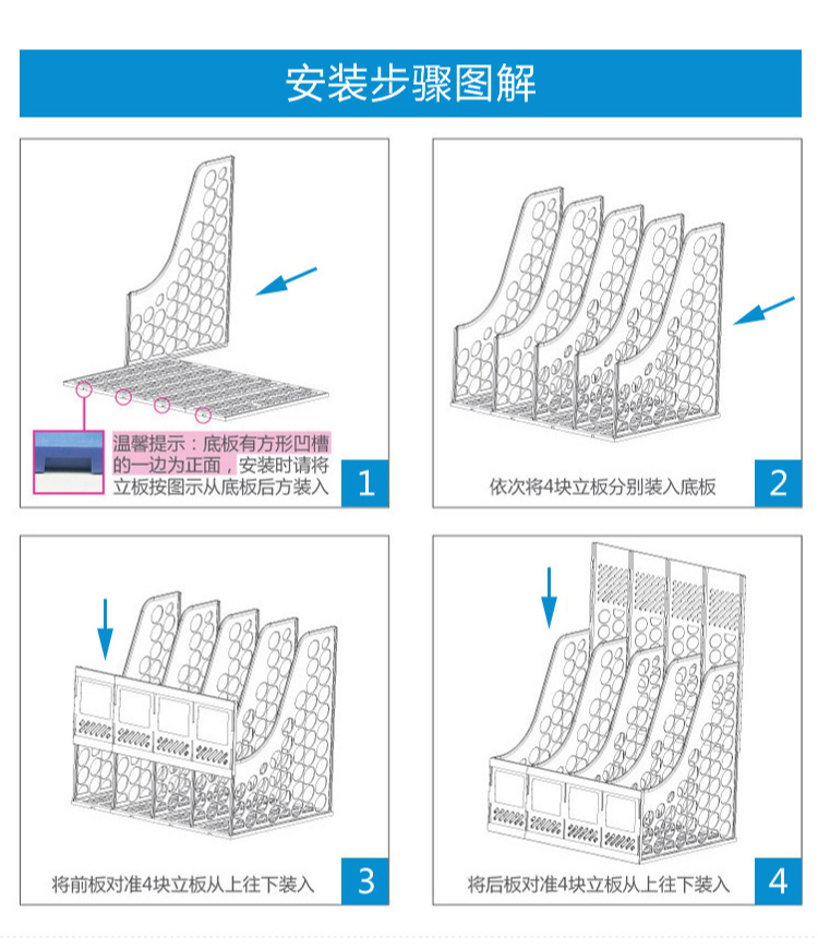 富强 加厚稳固型办公桌面四格文件筐 灰色