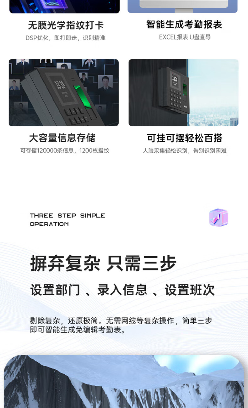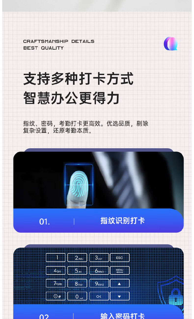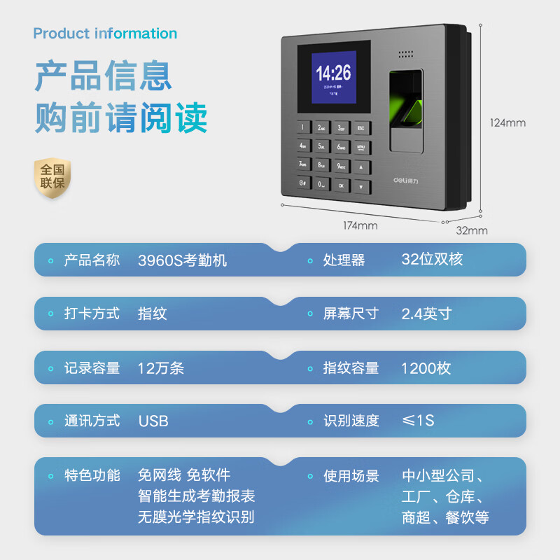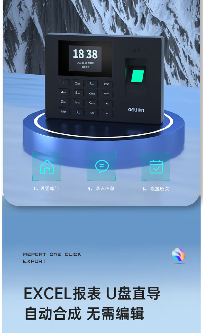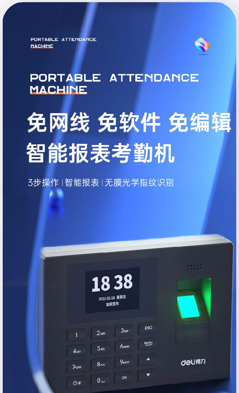 得力(deli)指纹打卡考勤机 免软件安装 自动生成报表 指纹打卡机3960S