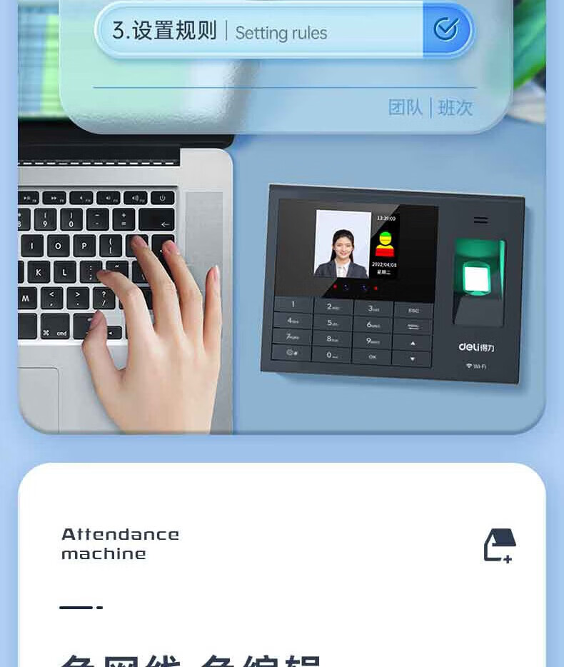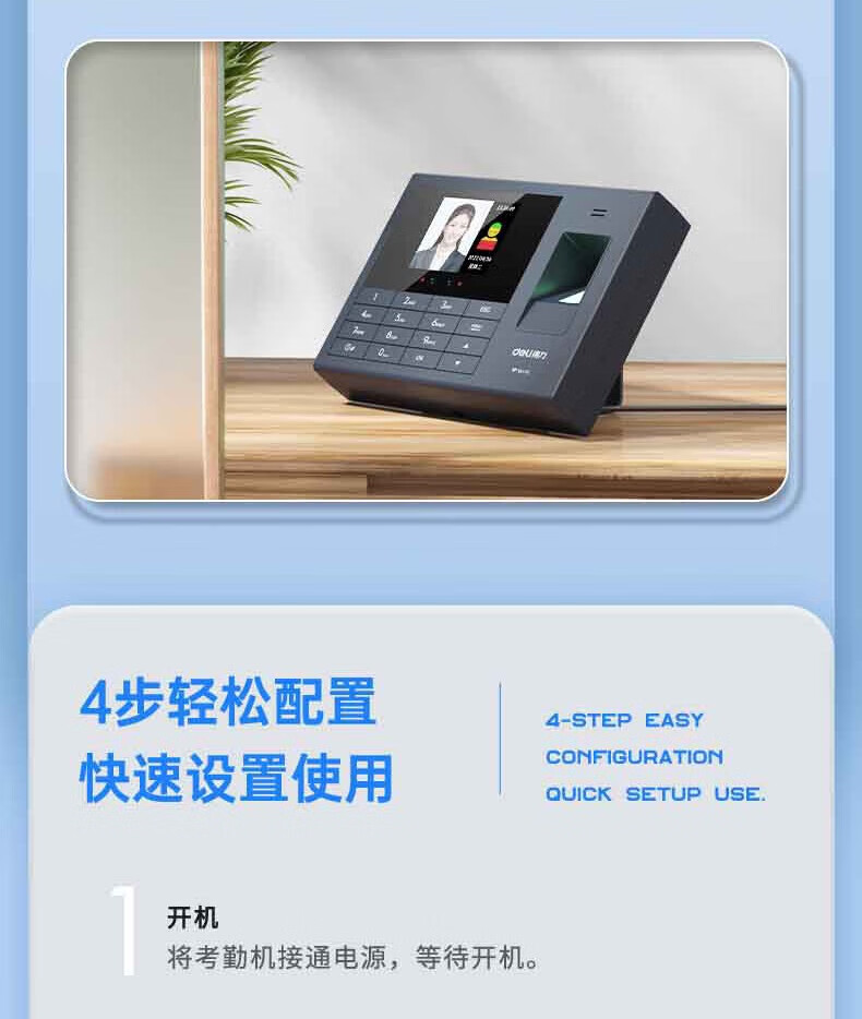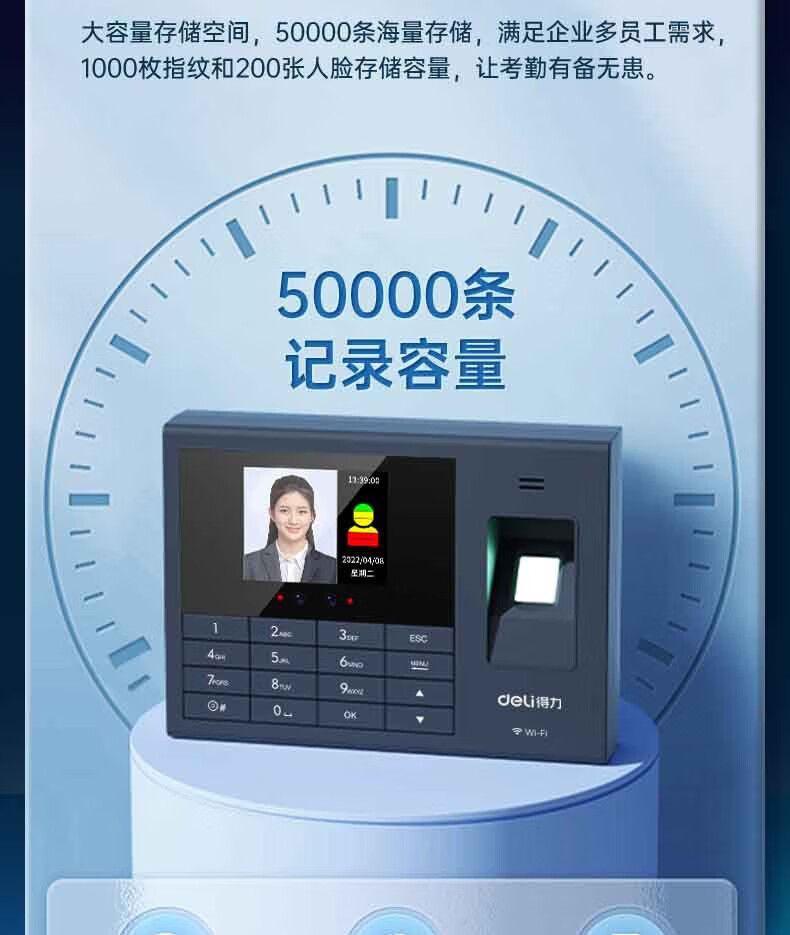 得力(deli 人脸指纹混合识别 人脸指纹考勤 200人脸+600枚指纹 34521