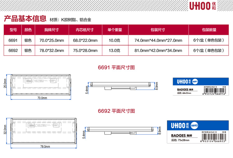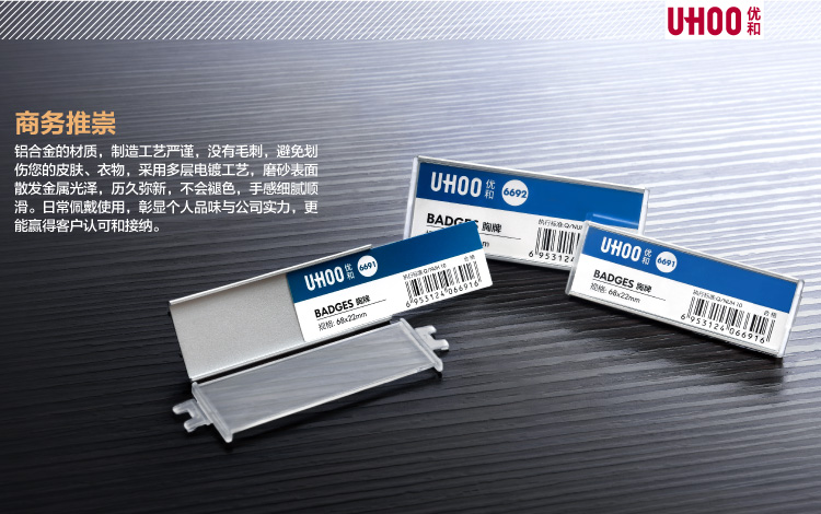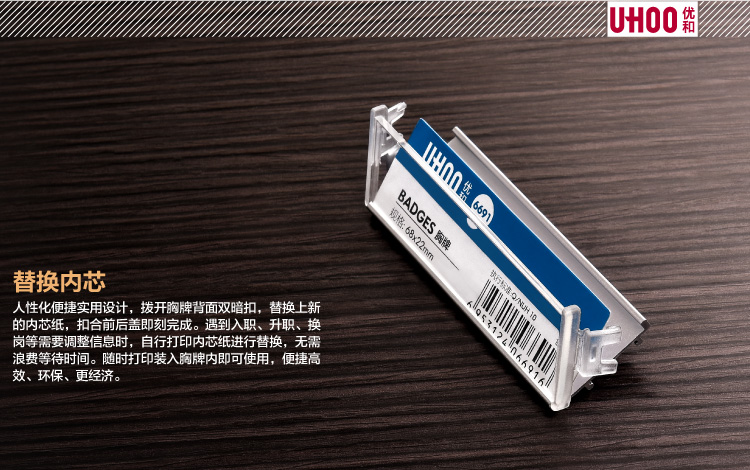 优和(UHOO) 6692 别针胸牌 银色底盖 内芯可替换 工作牌 员工牌 工号牌