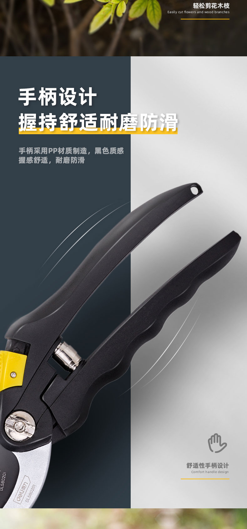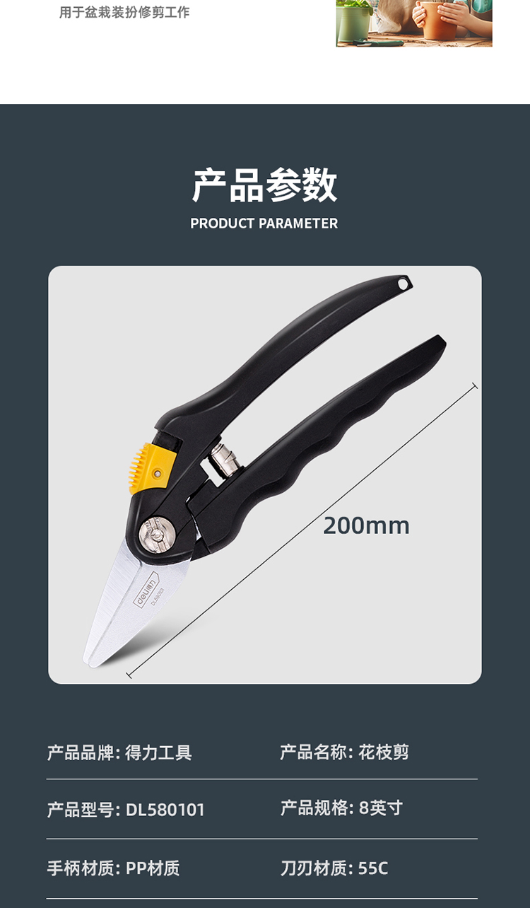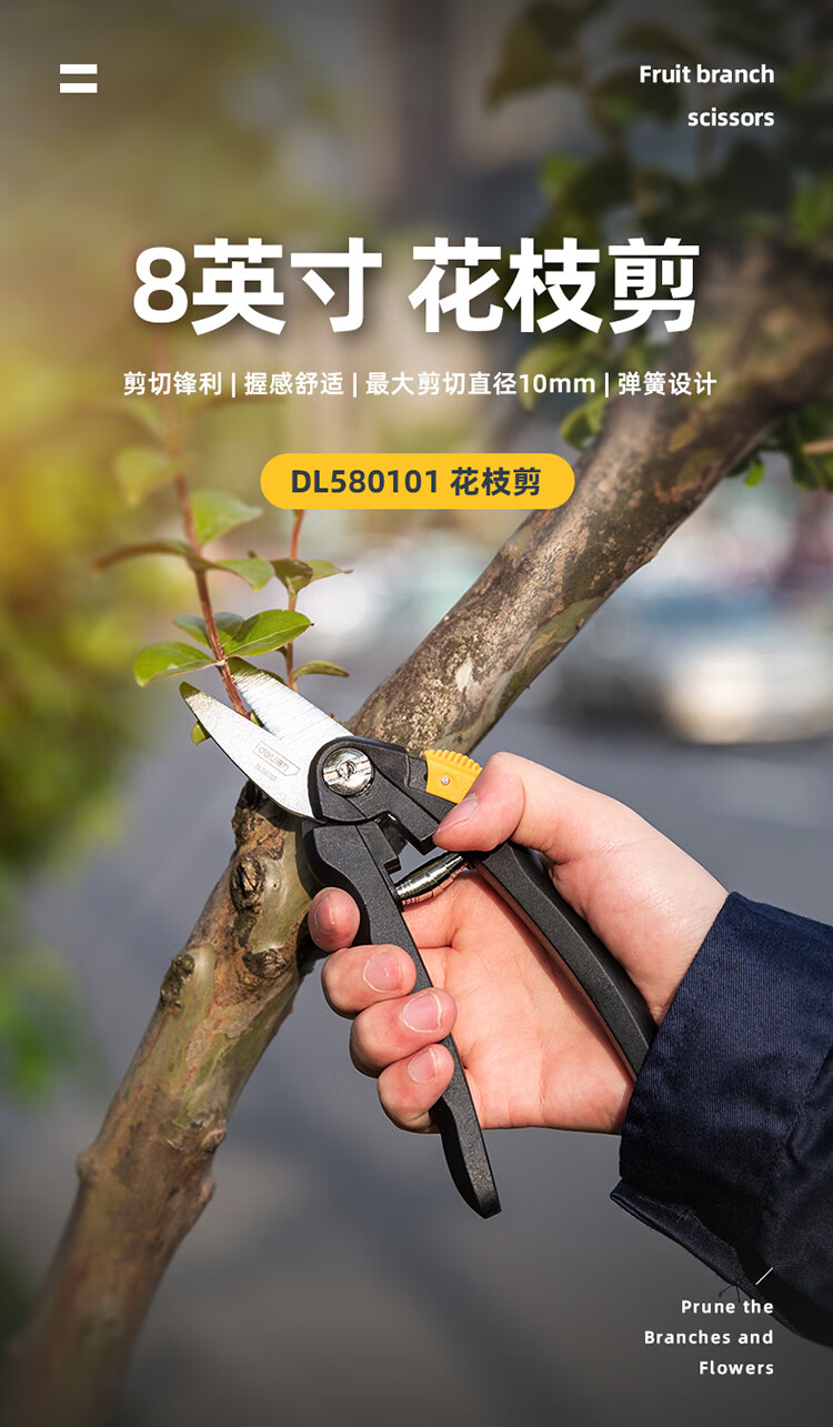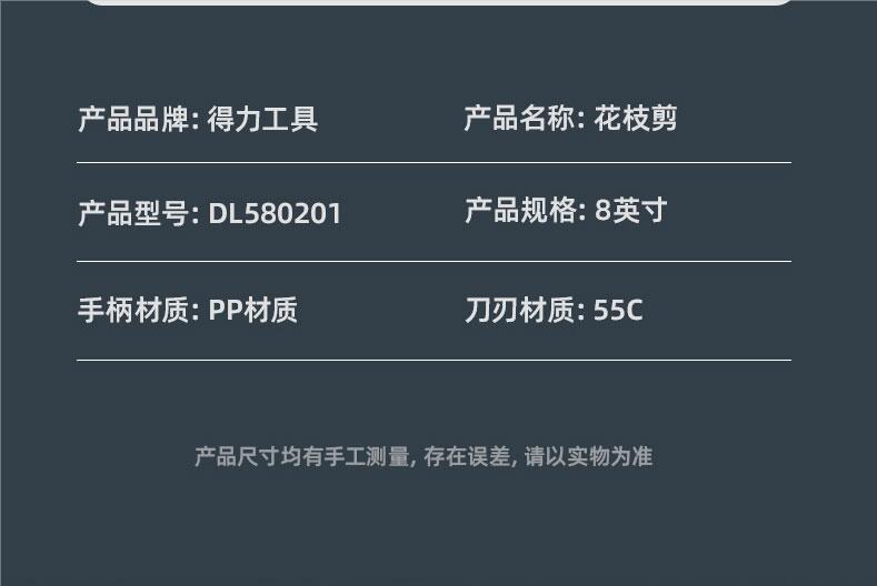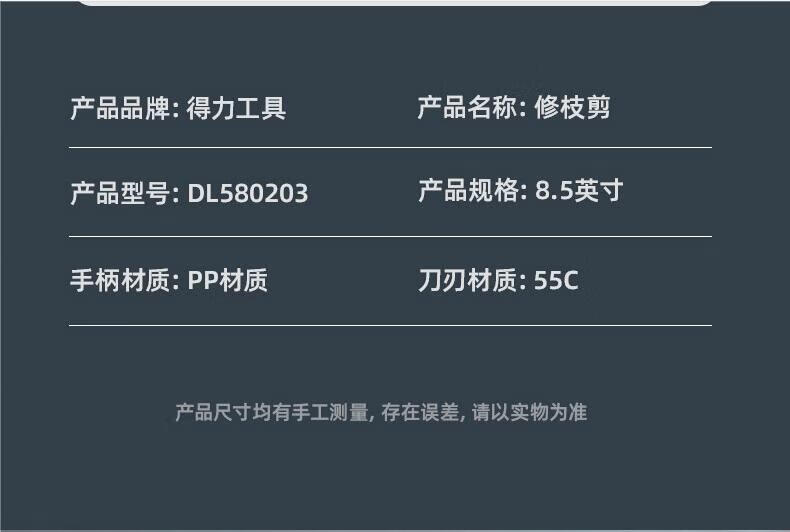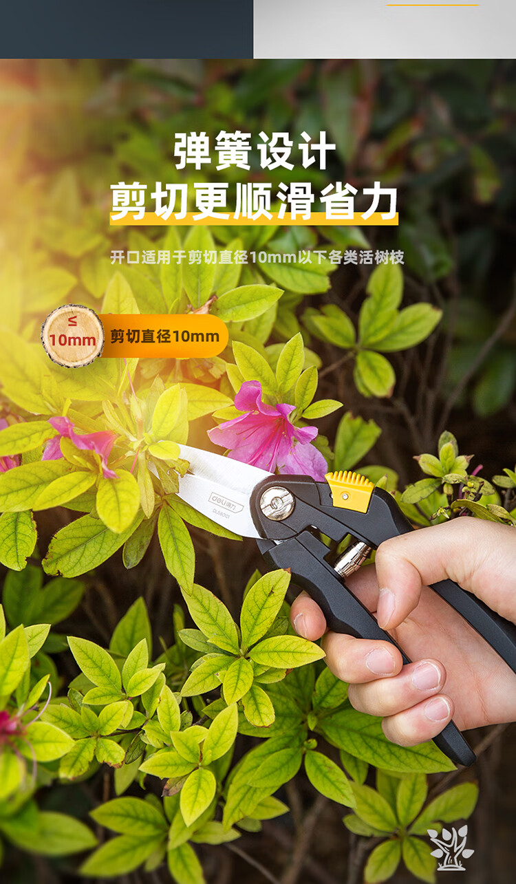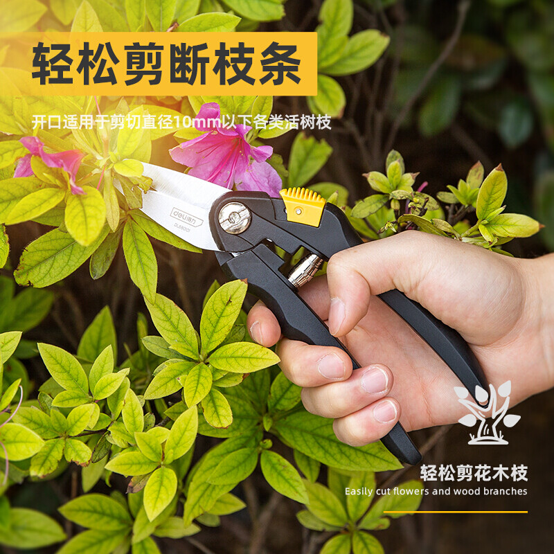 得力(deli) 高碳钢刀头花木剪修枝剪 花木修剪工具可剪0-10mm干木DL580101