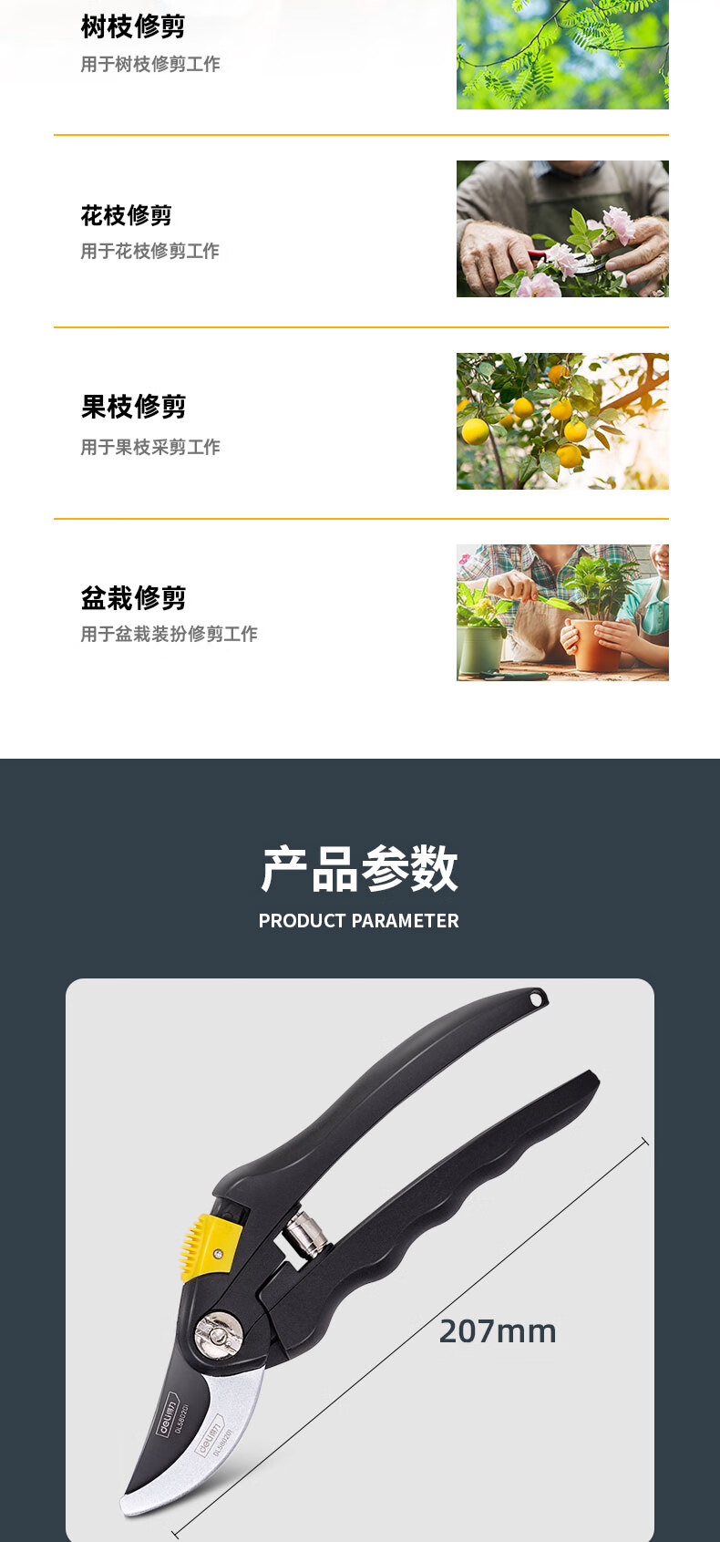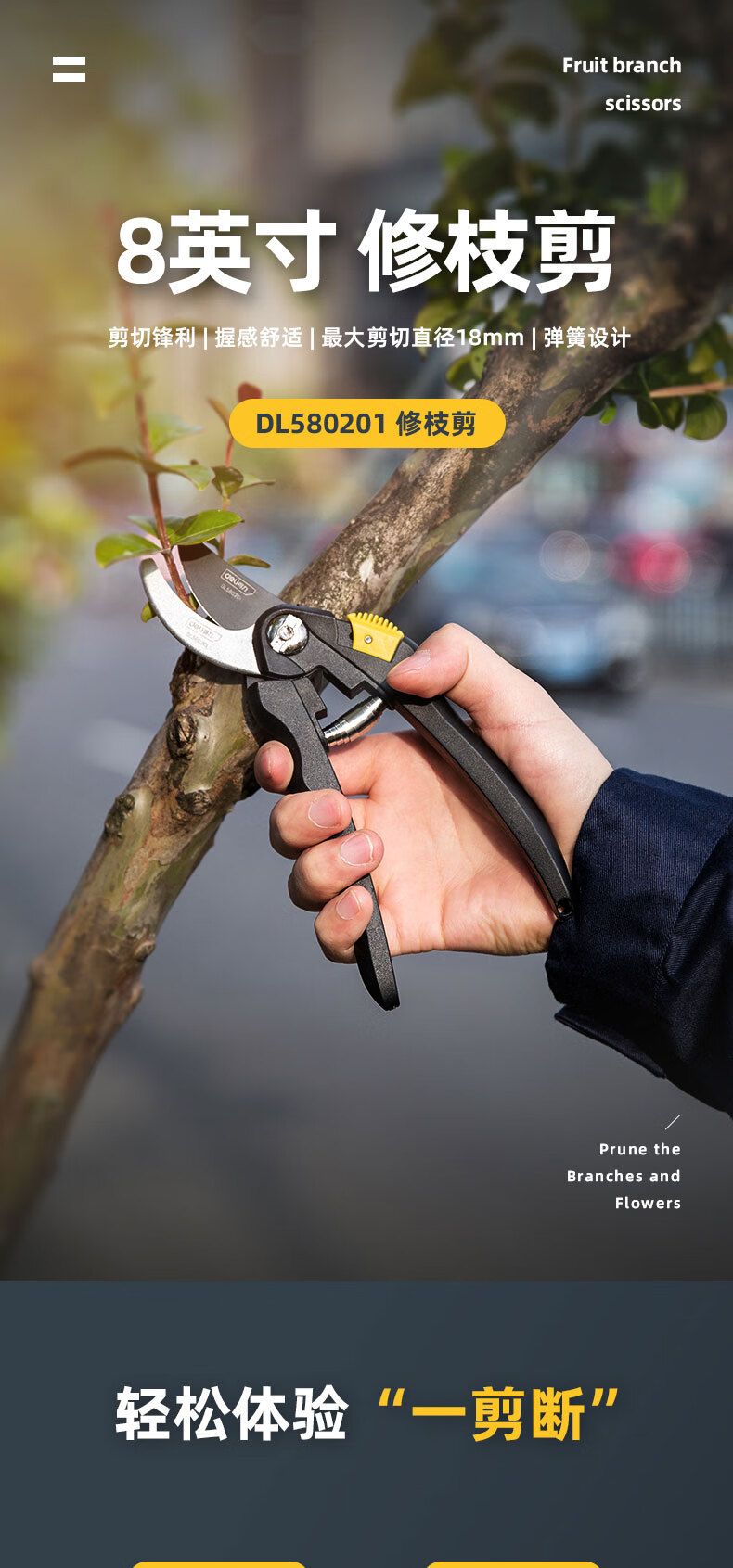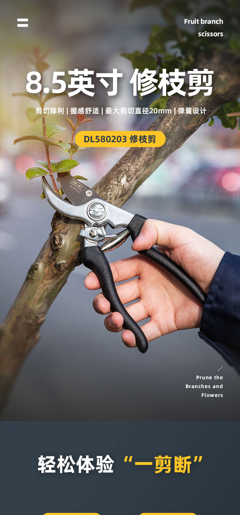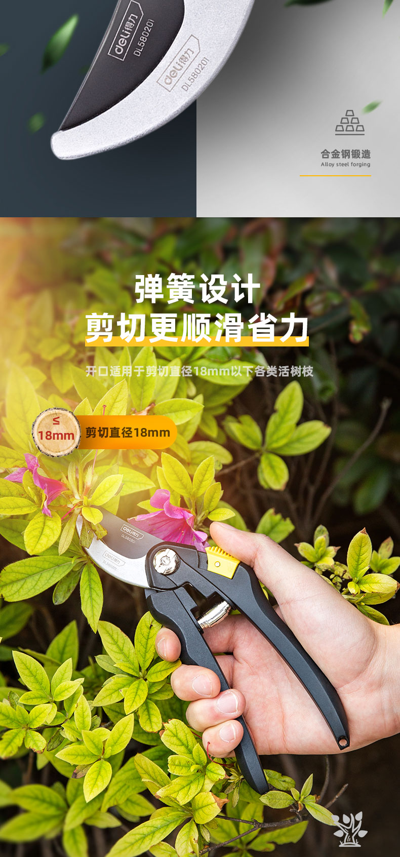 得力(deli) 高碳钢刀头花木剪修枝剪 花木修剪工具可剪0-10mm干木DL580101