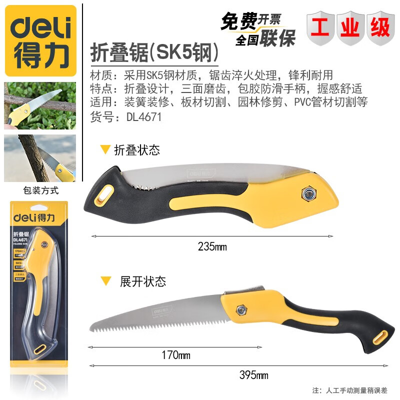 得力 锯子木手工家用园林果树折叠锯 户外手锯 DL4671_折叠锯