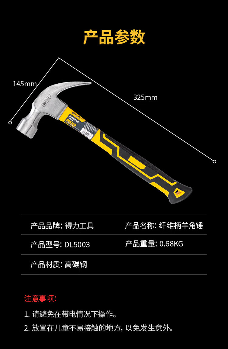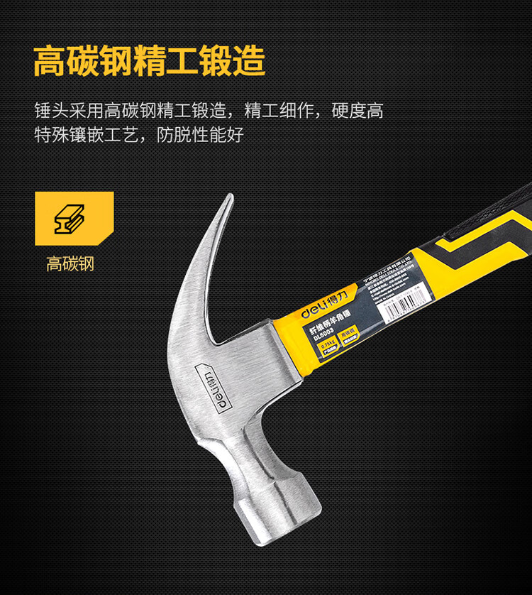 得力(deli)高碳钢锤 木工锤 拔钉起钉锤 榔头 0.75kg纤维柄 DL5003
