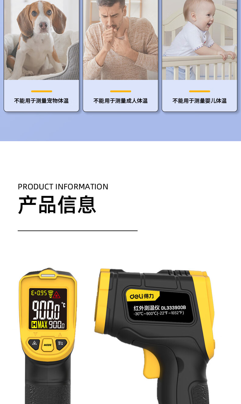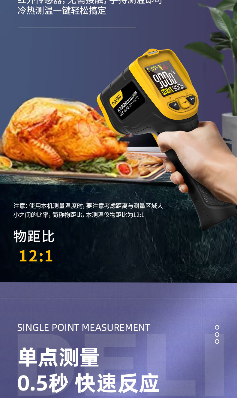 得力(deli)红外线测温仪 水温检测仪 油温枪 DL333900B