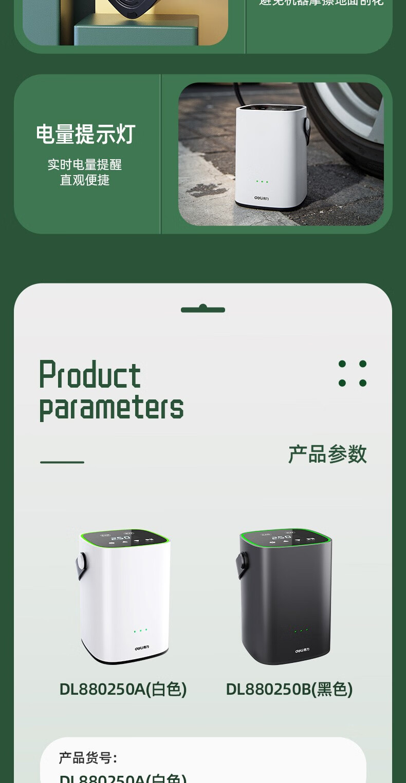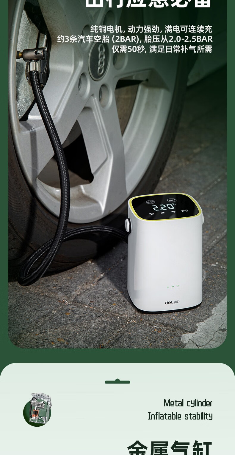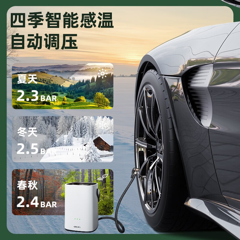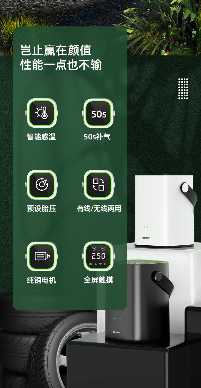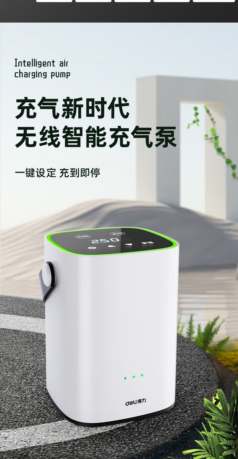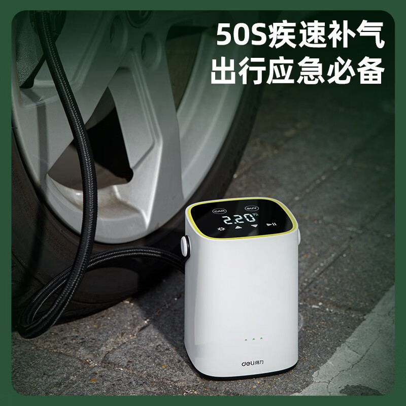 得力(deli)智能无线车载充气泵数显预胎压设温度感应便携式DL880250A