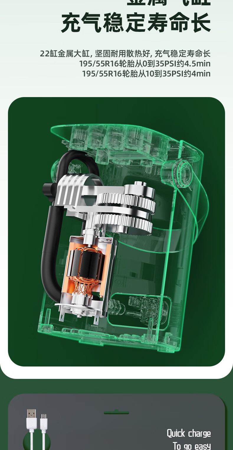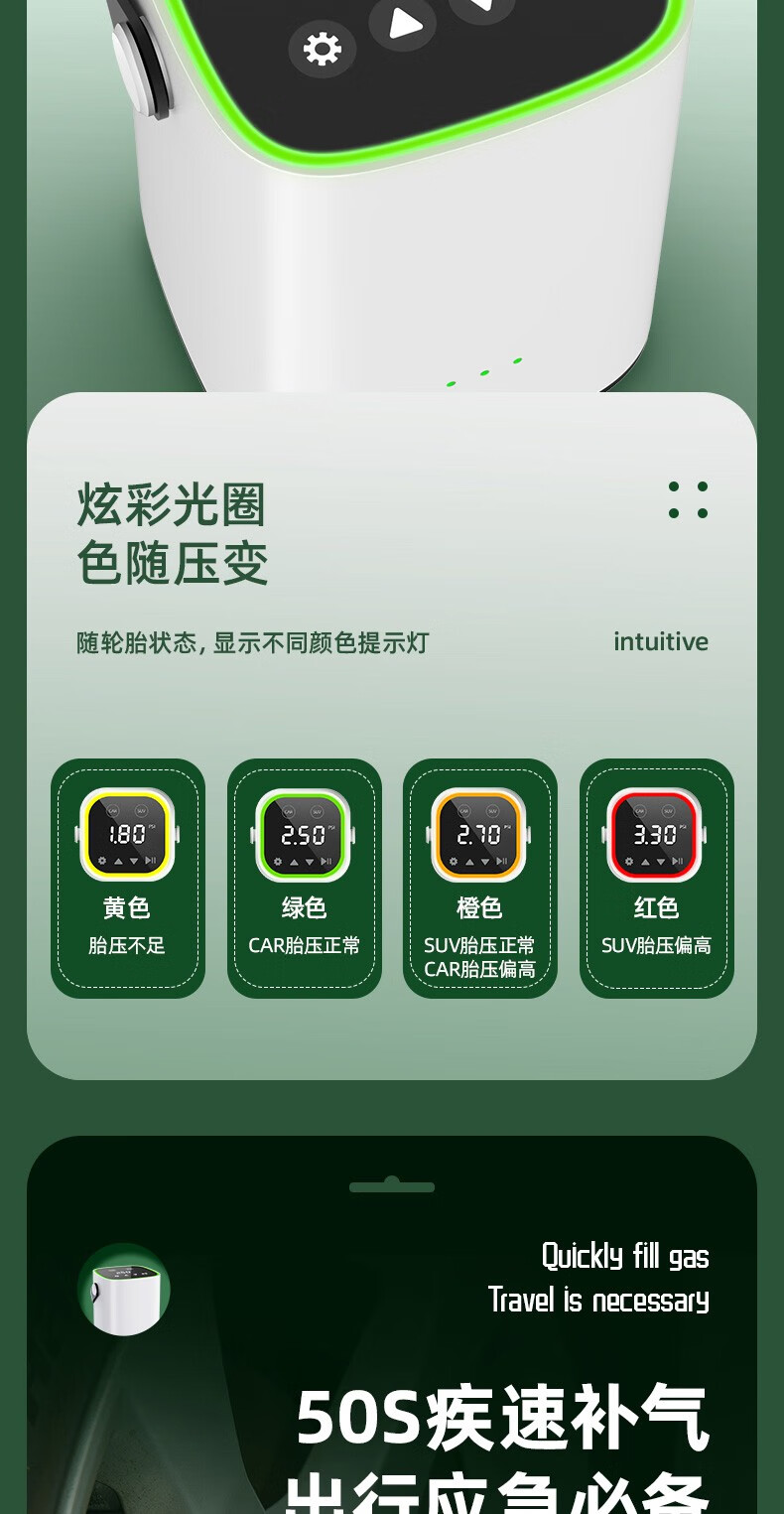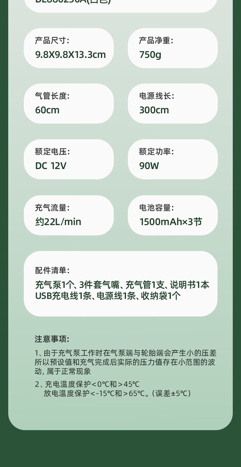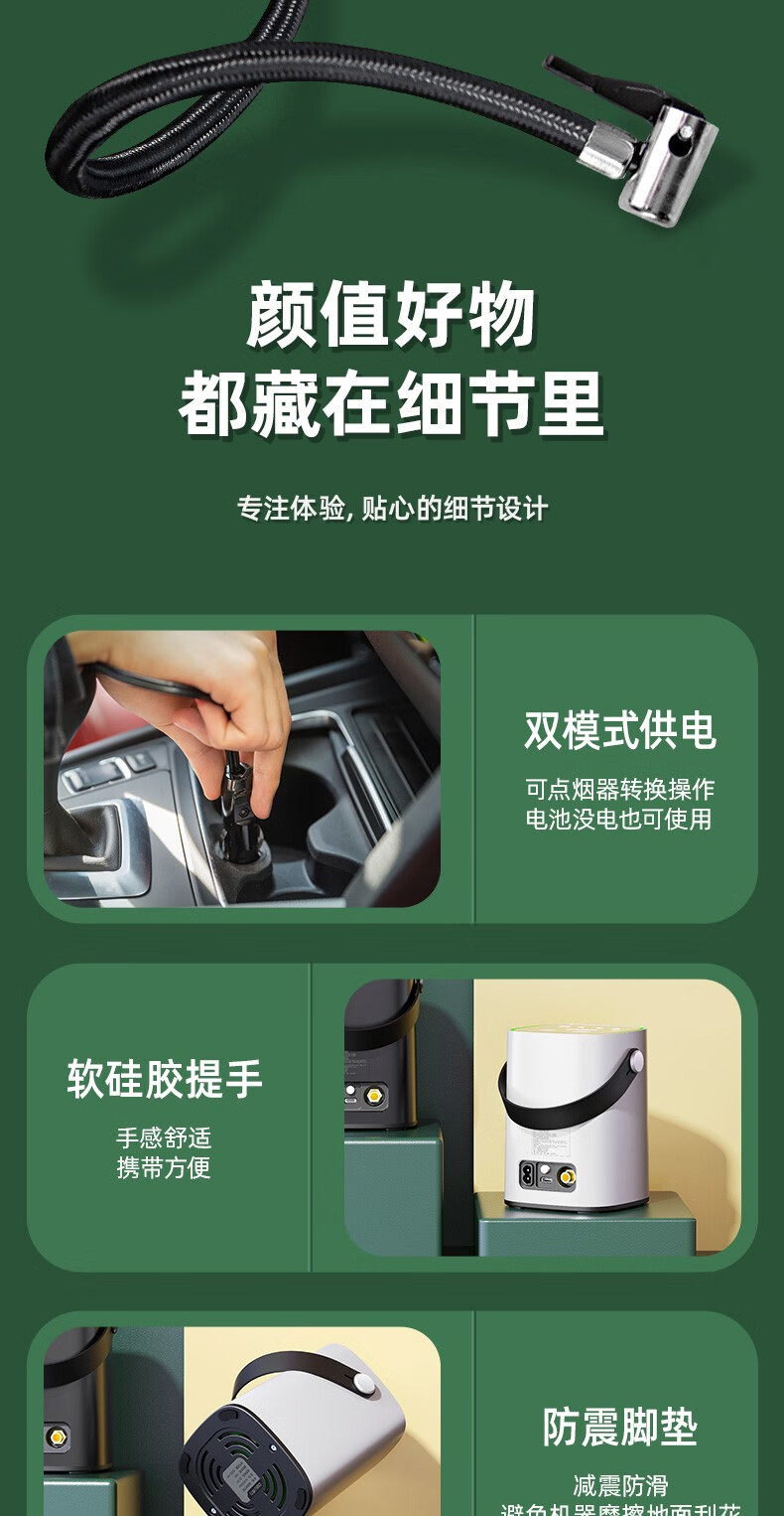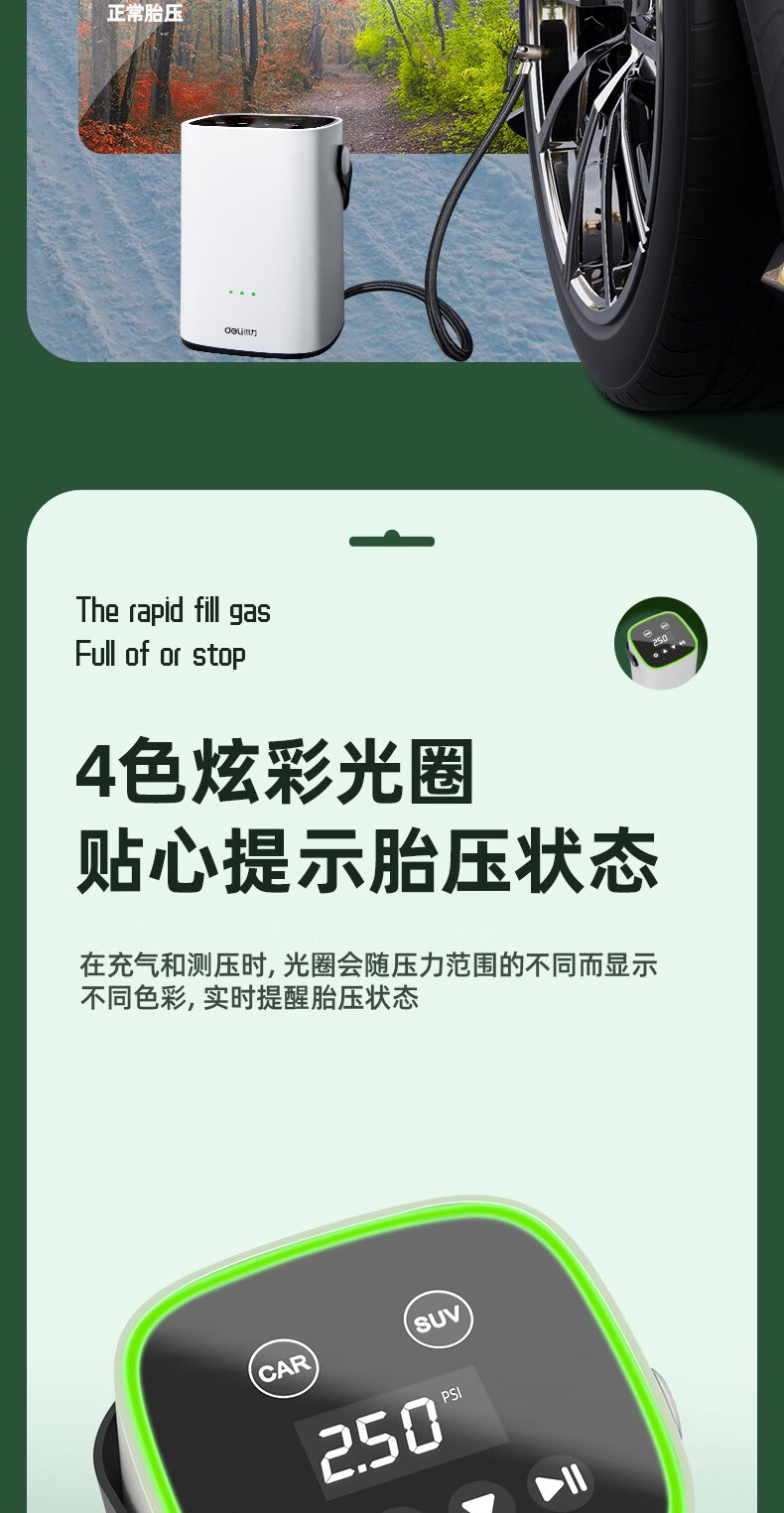 得力(deli)智能无线车载充气泵数显预胎压设温度感应便携式DL880250A