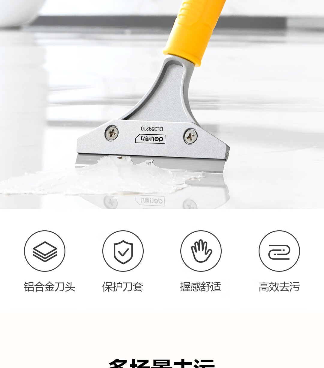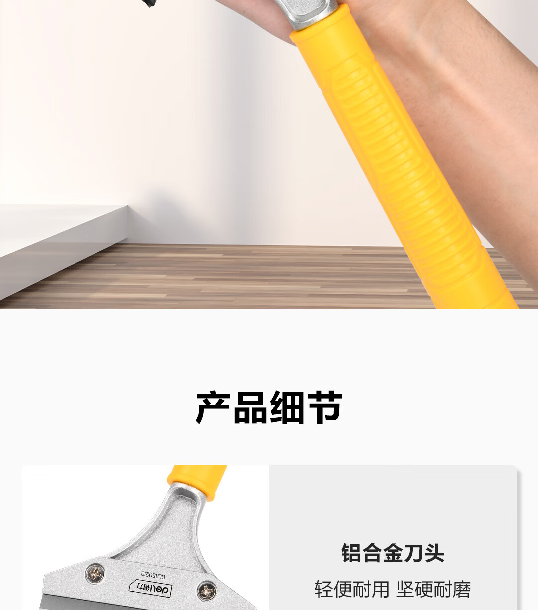 得力(deli)铝合金刮污刀铲刀玻璃刮刀地板墙皮瓷砖清洁除胶210mm DL359210