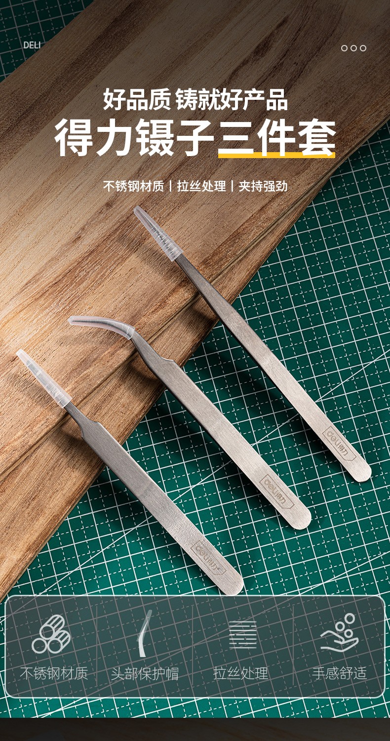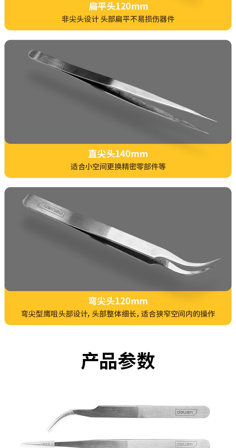 得力 镊子 不锈钢平头镊子DL396202