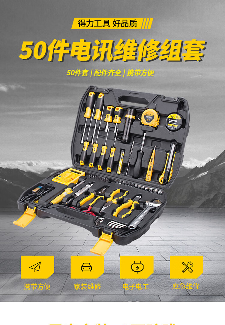 得力(deli)电讯综合维修工具套装 50件套DL1050