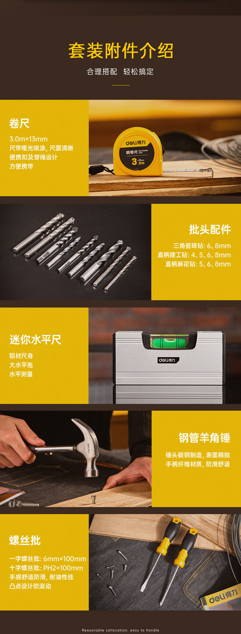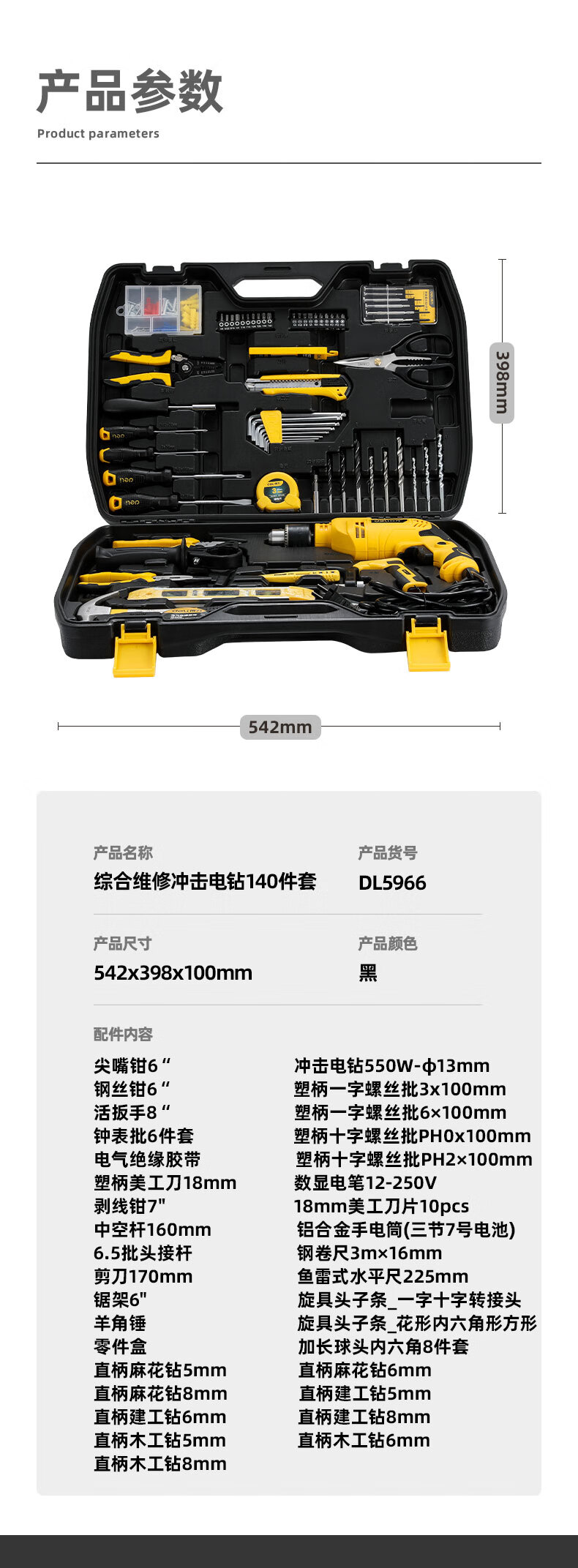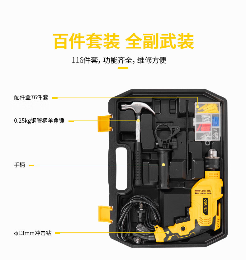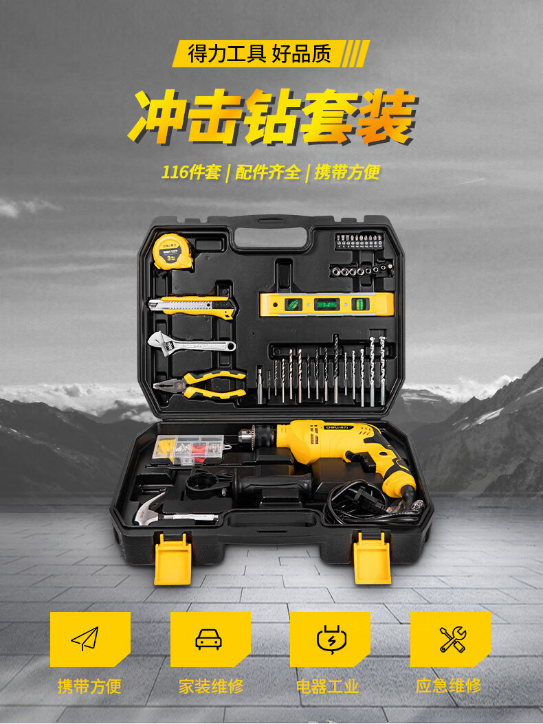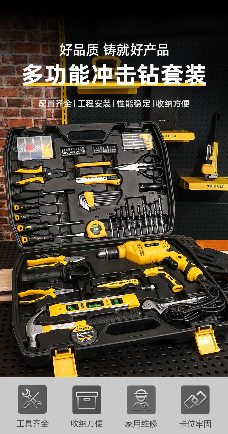 得力(deli)冲击钻综合维修工具套装 116件套DL6011