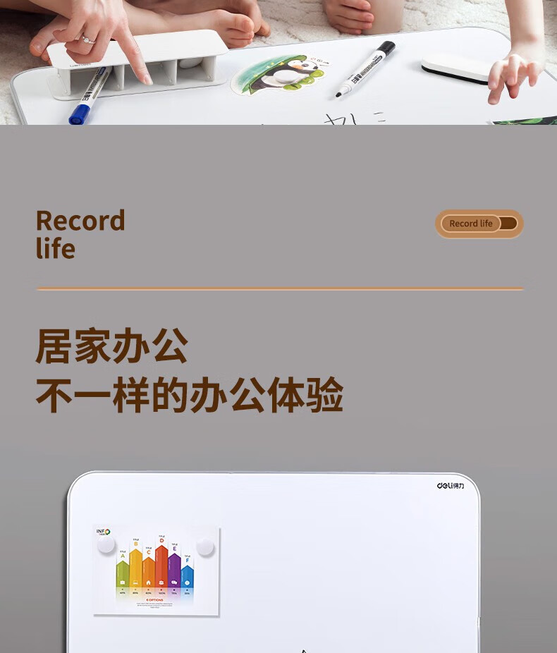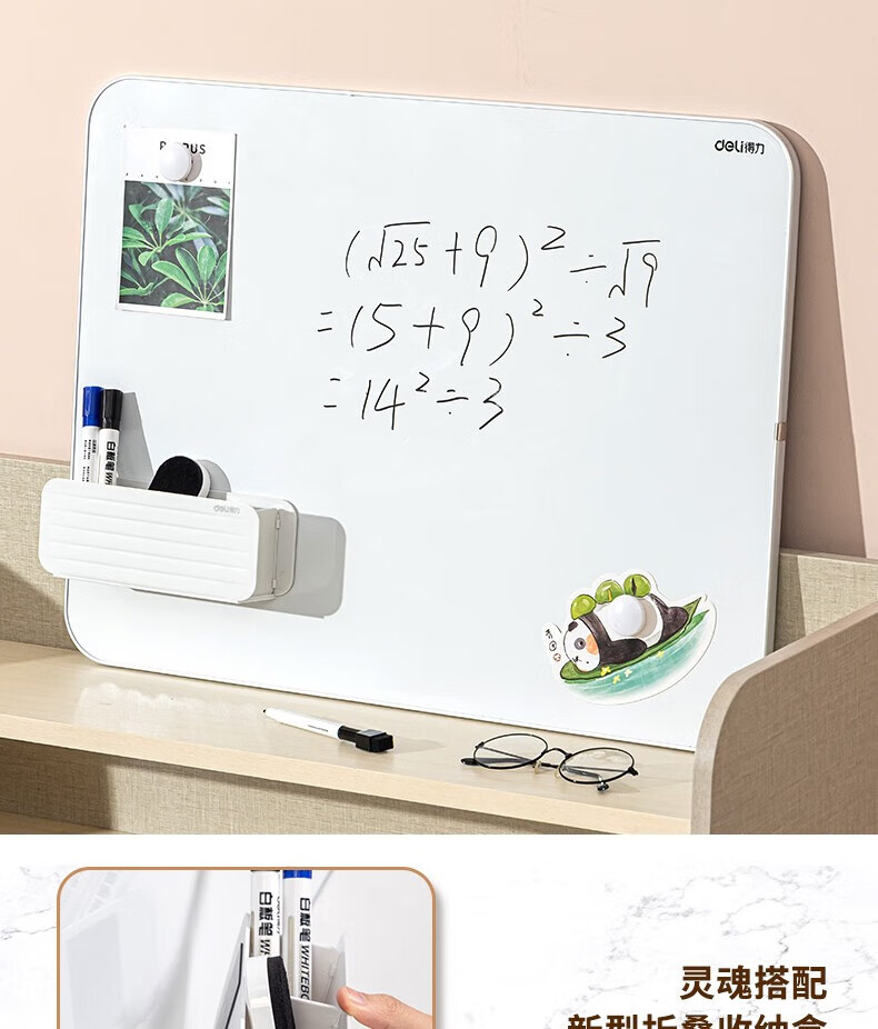 得力(deli) 悬挂磁性白板 易擦易写 办公会议白板 悬挂式写字板黑板 90*60cm 8791