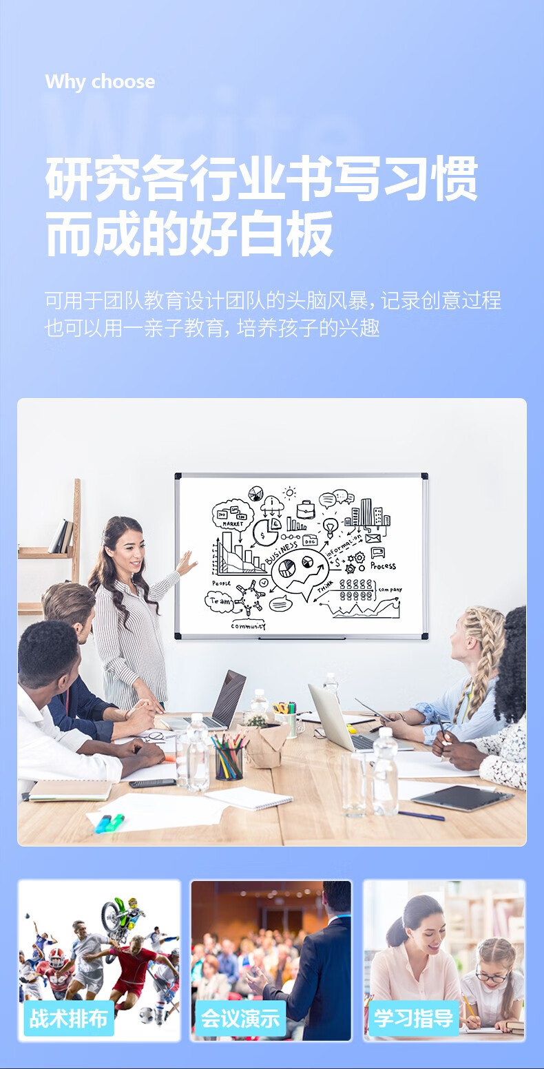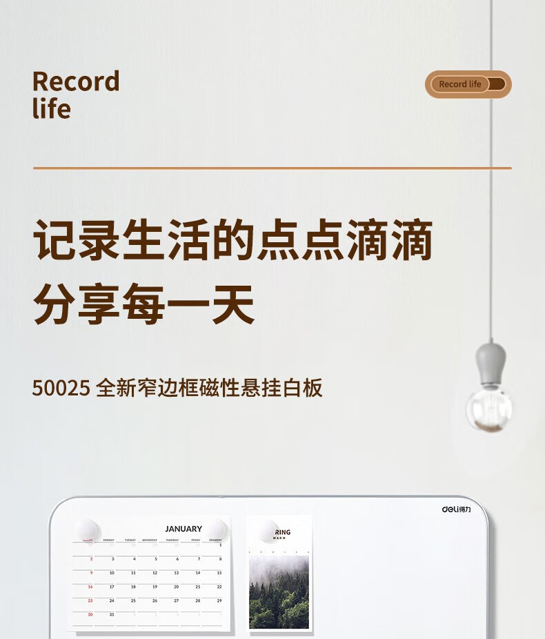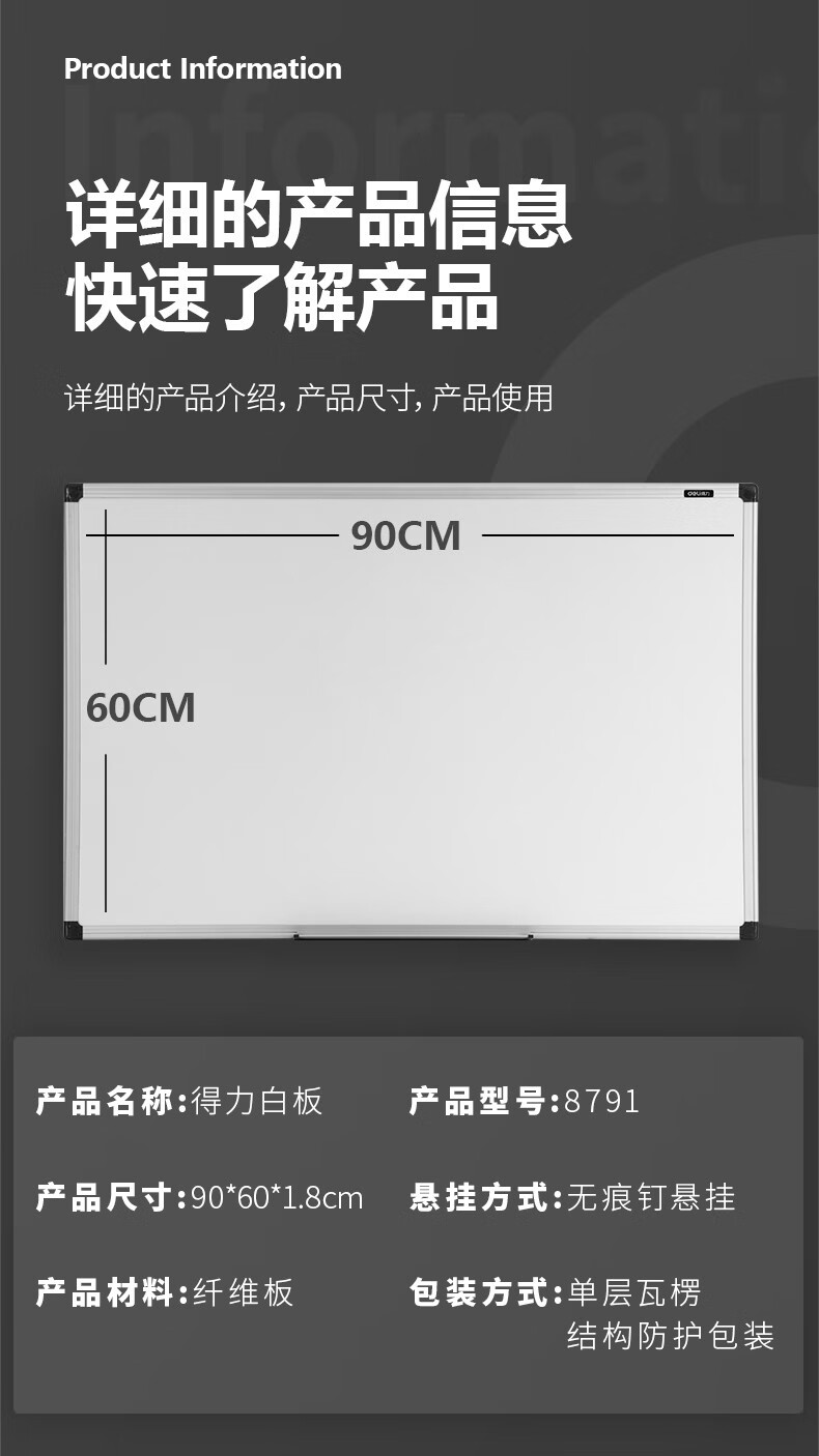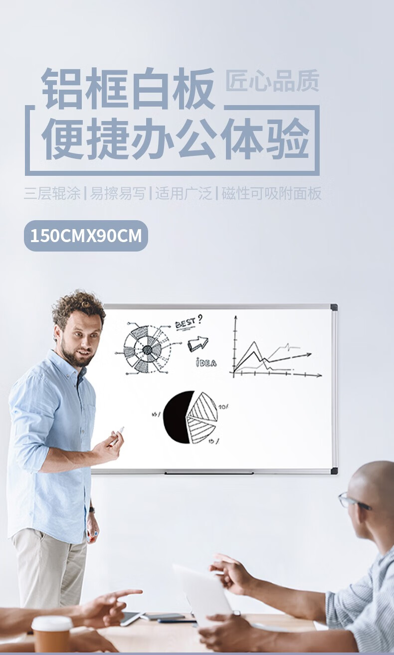 得力(deli) 悬挂磁性白板 易擦易写 办公会议白板 悬挂式写字板黑板 150*90cm 33356