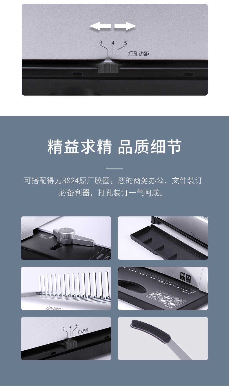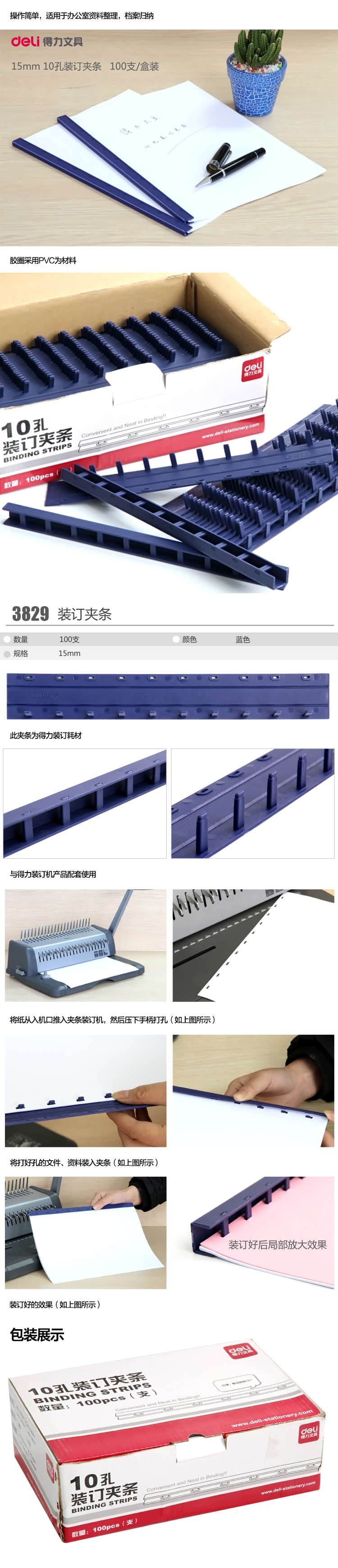 得力(deli)21孔文件打孔机 梳式财务装订机 3829-10孔夹条 15mm