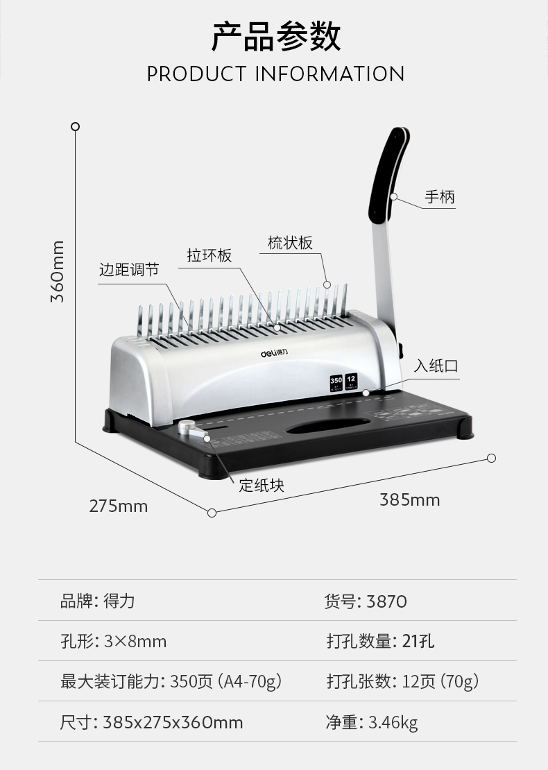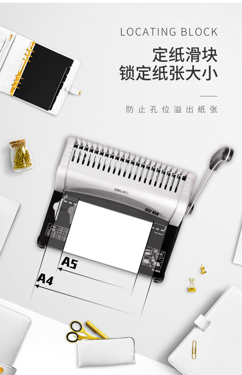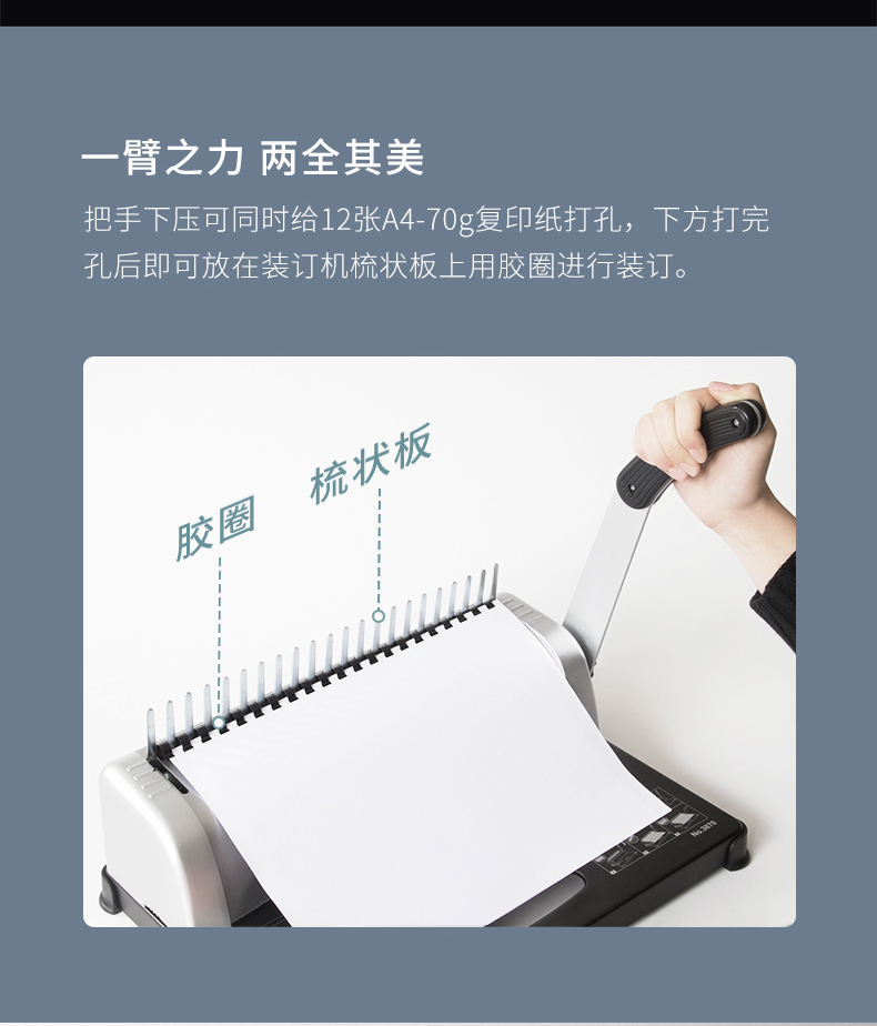 得力(deli)21孔文件打孔机 梳式财务装订机 3828-10孔夹条 12.5mm