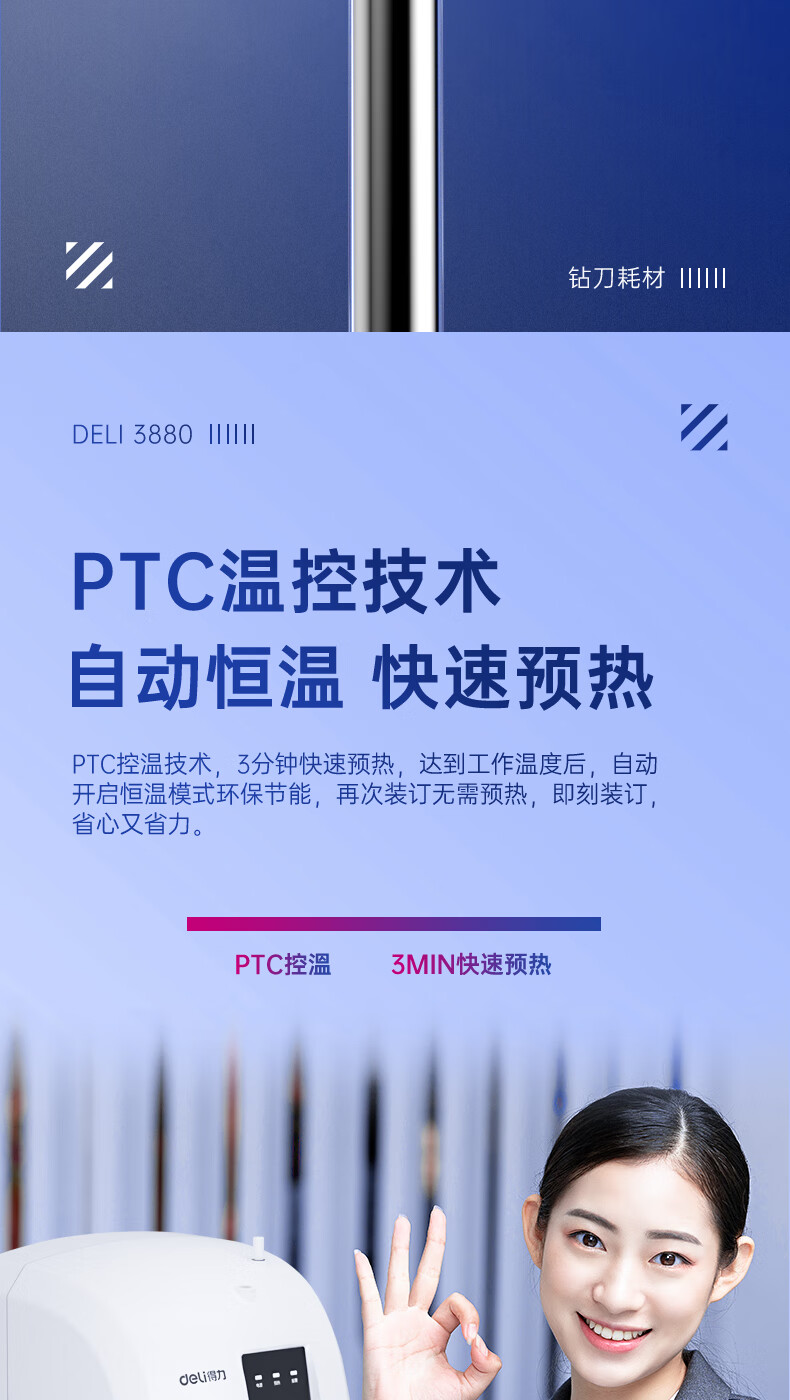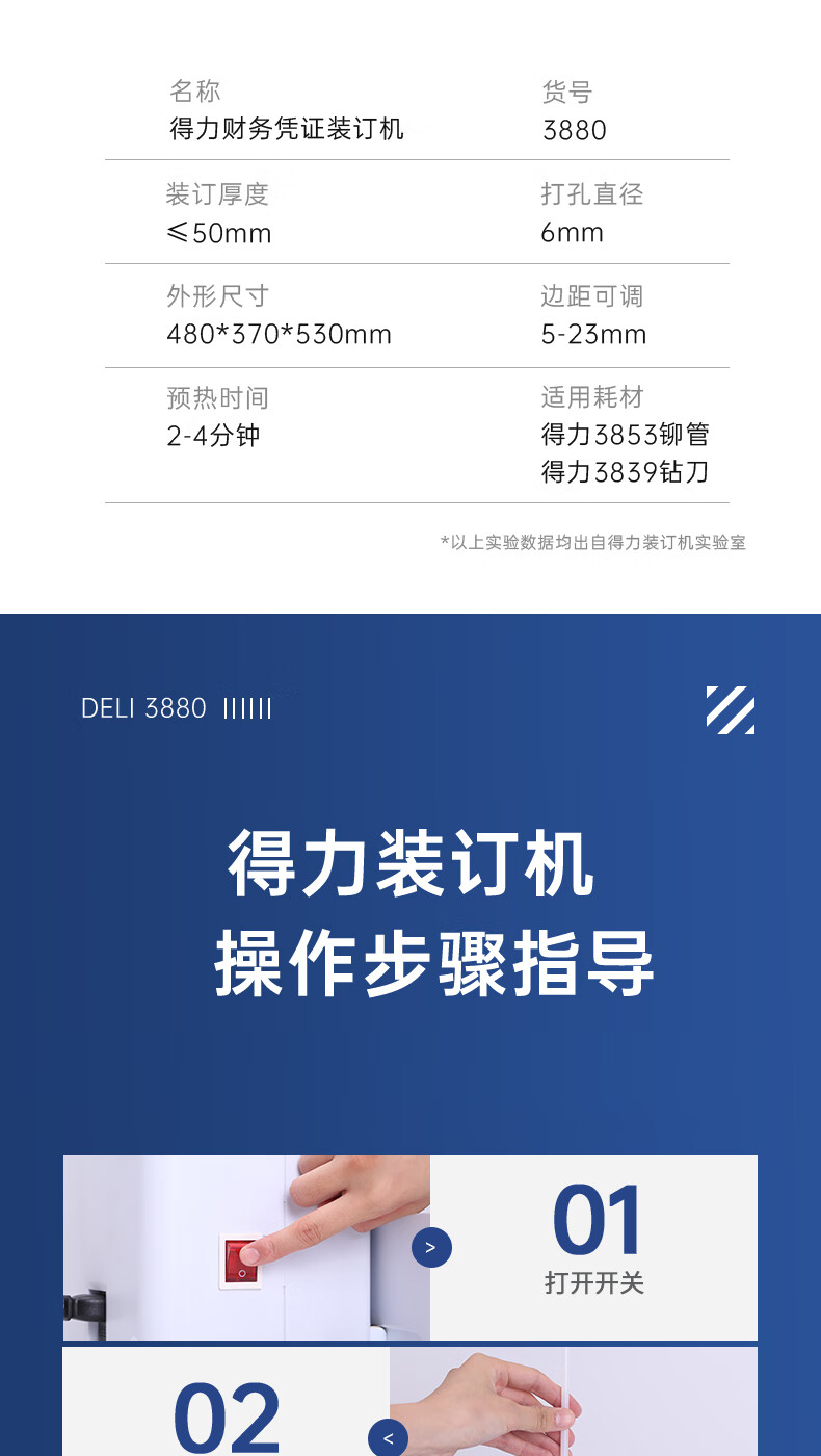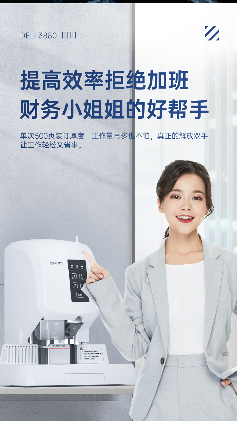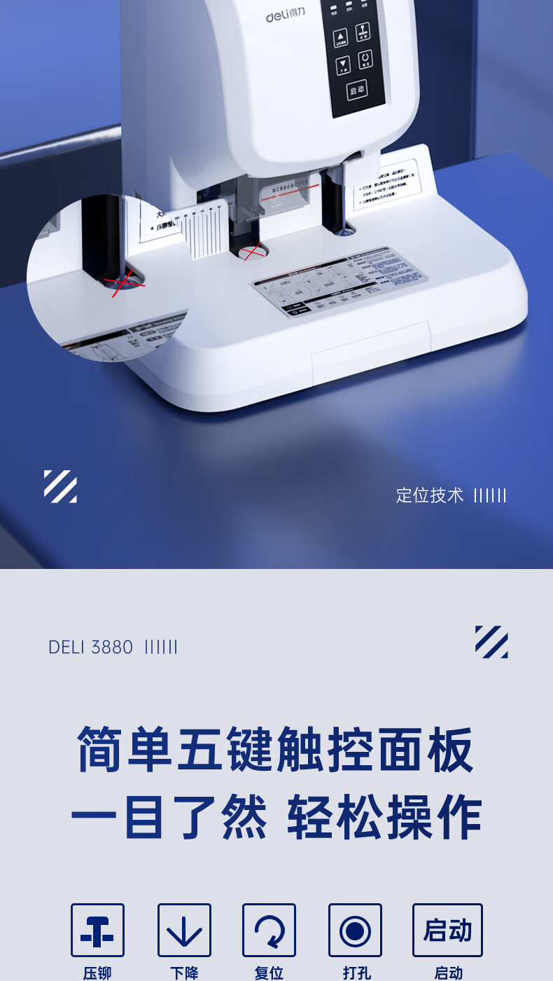 得力(deli)3880 激光定位财务凭证自动装订机 标书文案卷宗电动档案打孔机