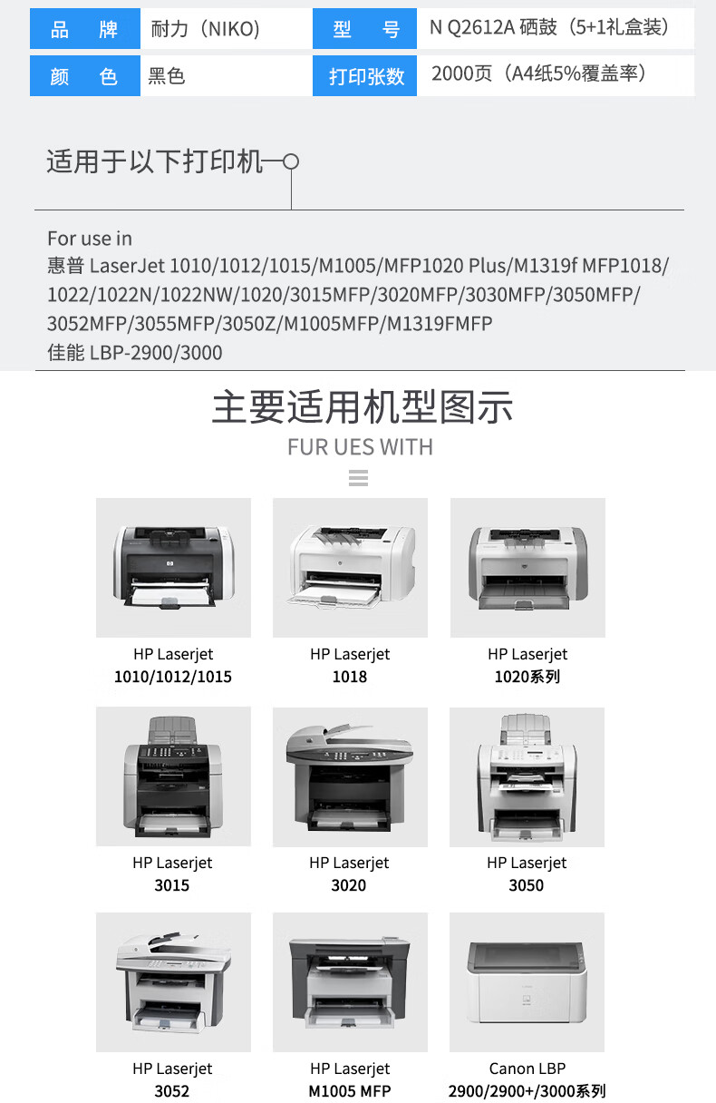 耐力(NIKO)NQ2612A硒鼓 (适用惠普 LaserJet 1010/1015/1020/3050/M1005/M1319f)