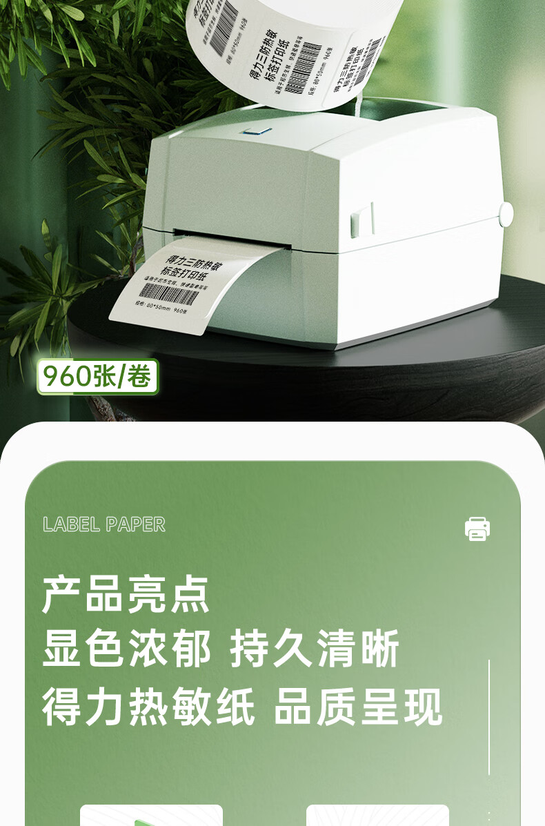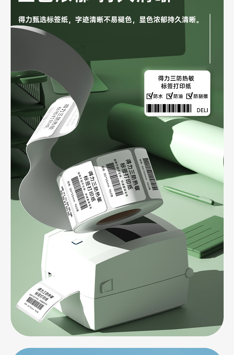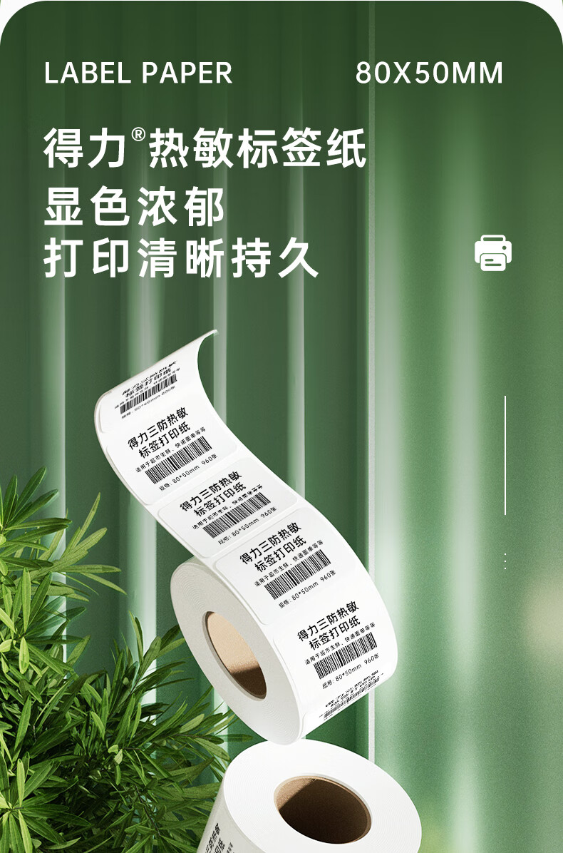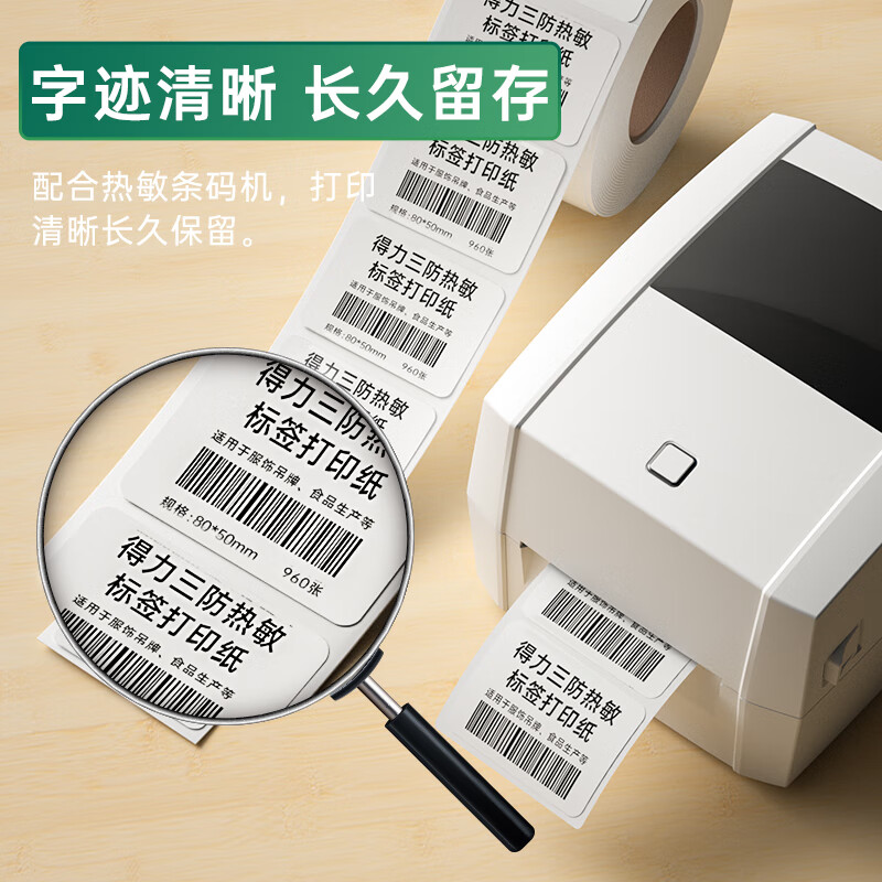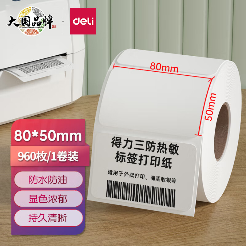 得力(deli)80*50mm三防热敏标签打印纸 电子面单标签不干胶打印纸电子称条码纸960张*1卷 三防升级款12007