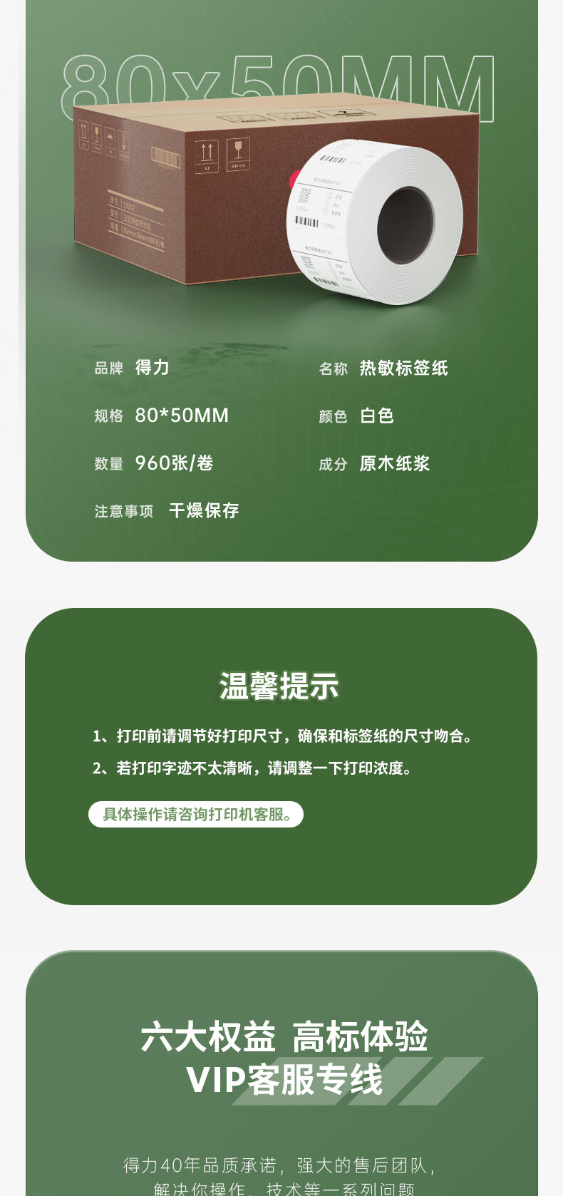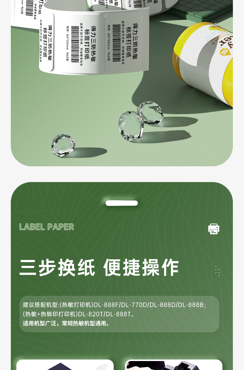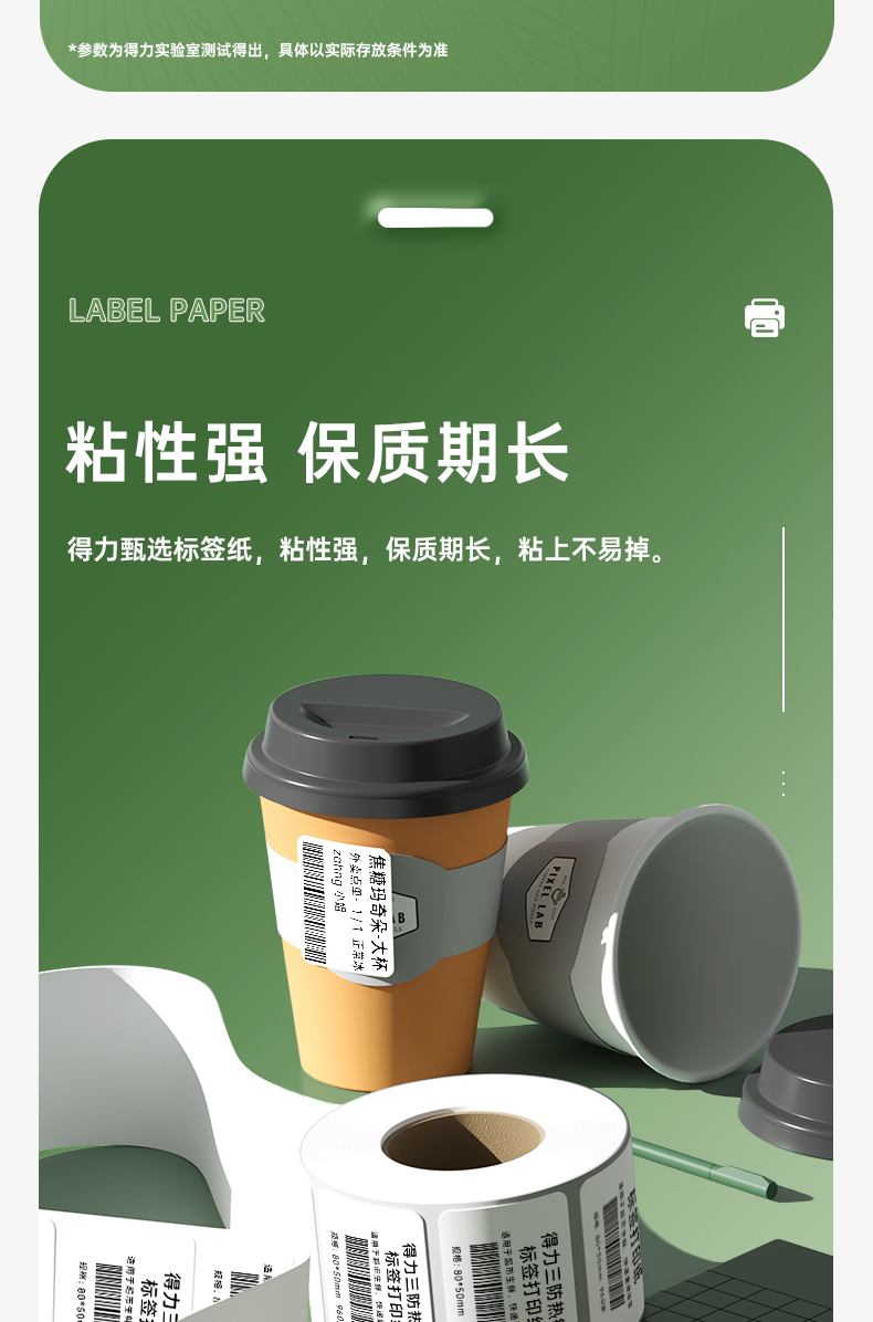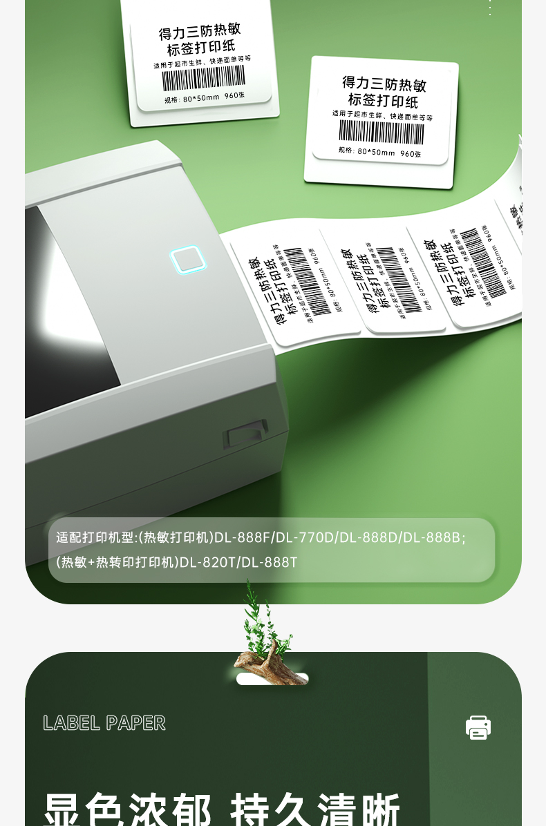 得力(deli)80*50mm三防热敏标签打印纸 电子面单标签不干胶打印纸电子称条码纸960张*1卷 三防升级款12007
