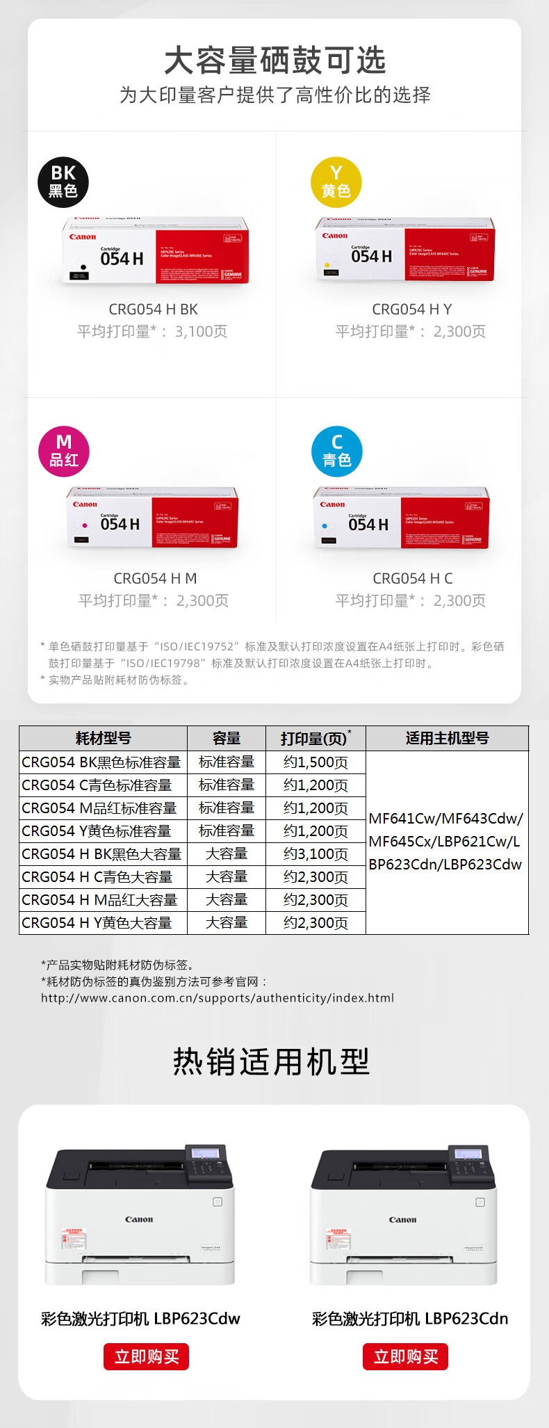 佳能(Canon)CRG054硒鼓原装红色 佳能MF641cw 643Cdw 645cx LBP623Cdw 621cw打印机硒鼓