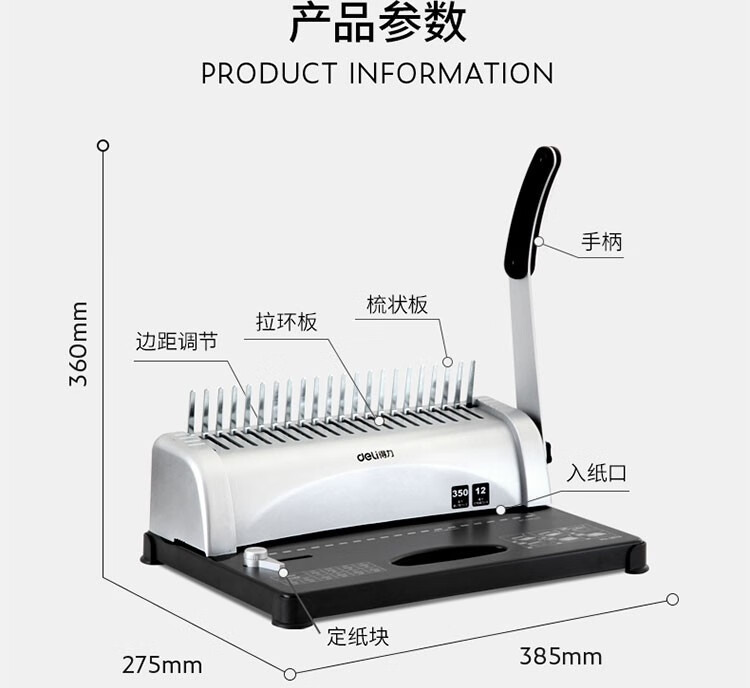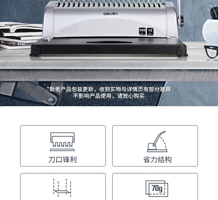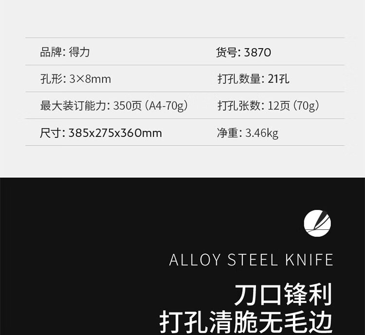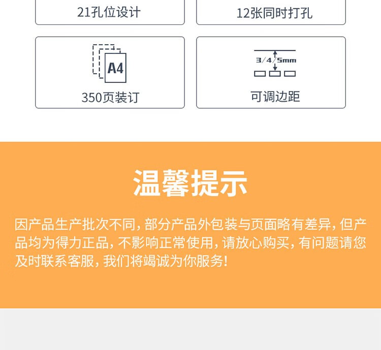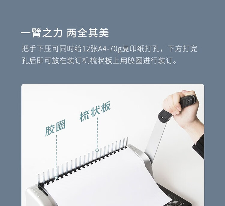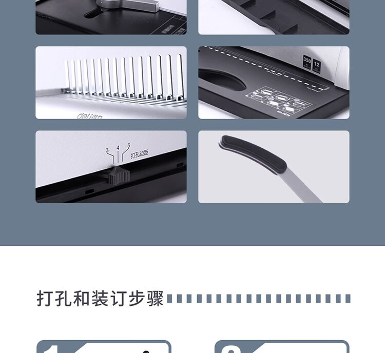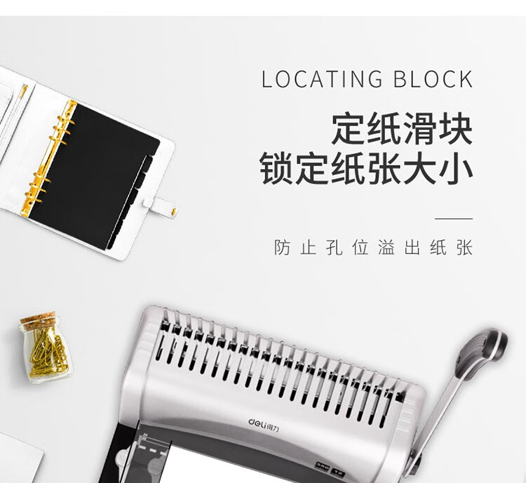得力(deli) 21孔文件打孔装订机 手动胶圈夹条打孔机 手动省力(15张/次)3872