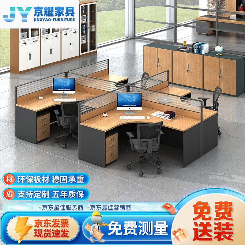 京耀职员办公桌屏风员工桌电脑桌工作位4人位含椅子