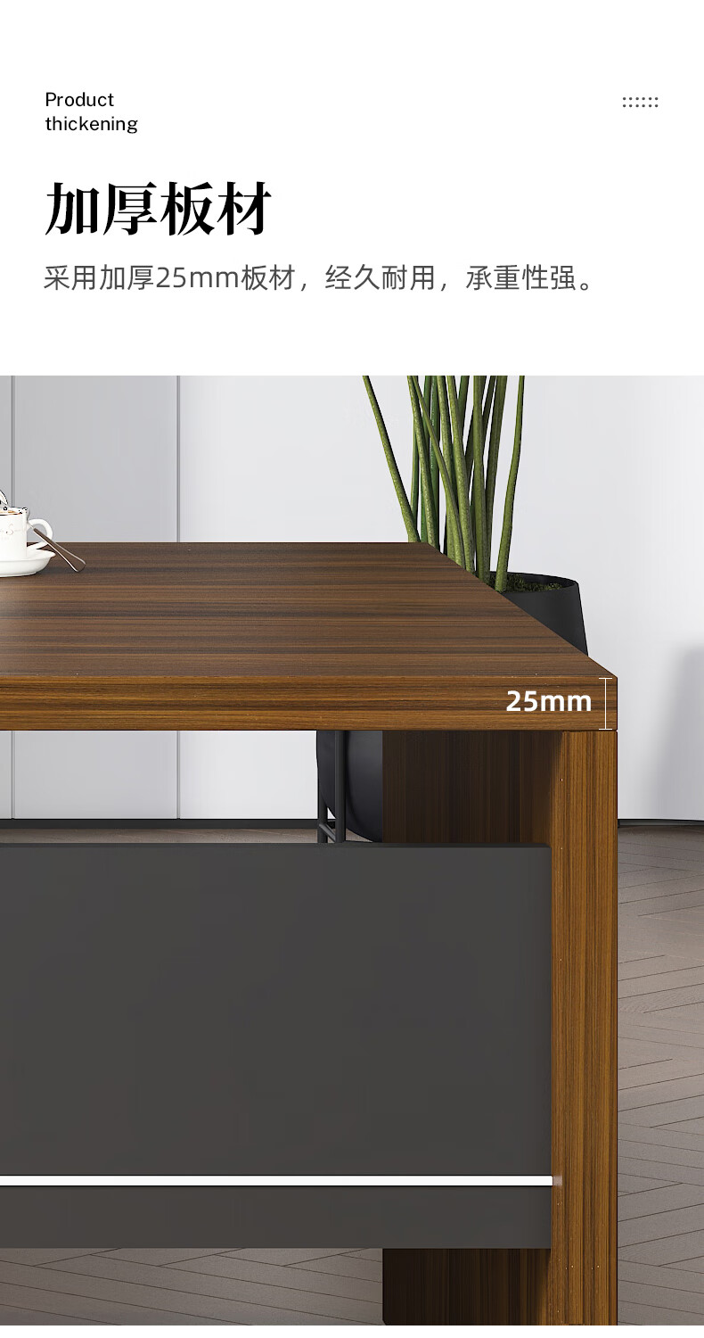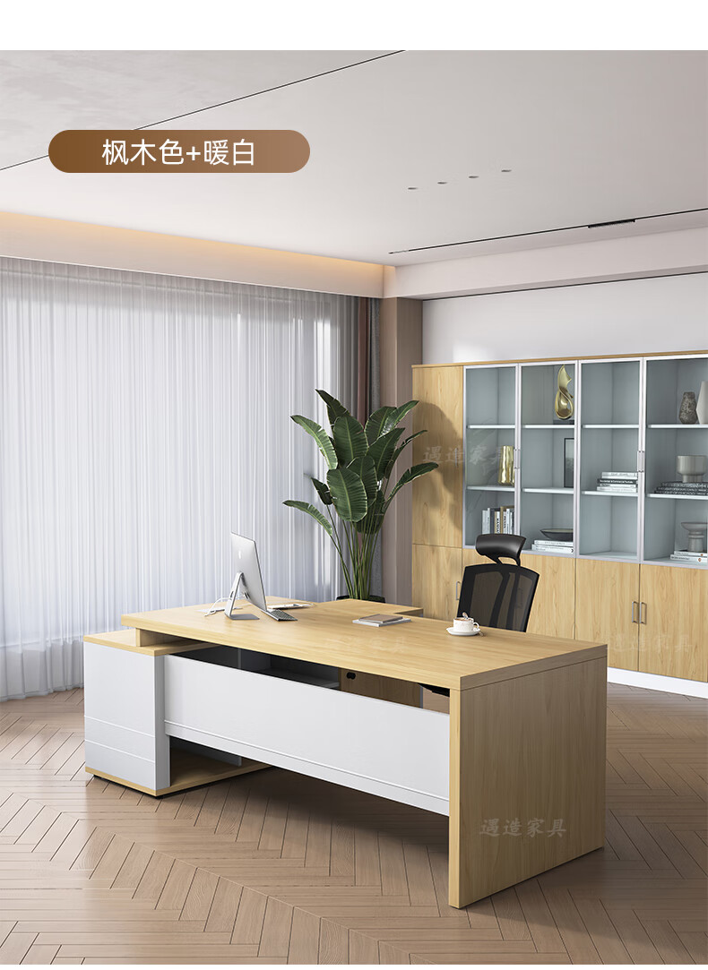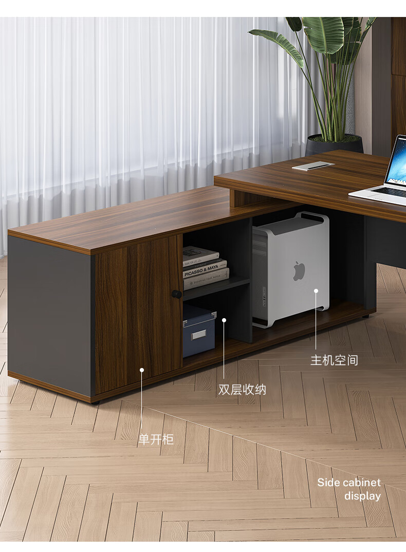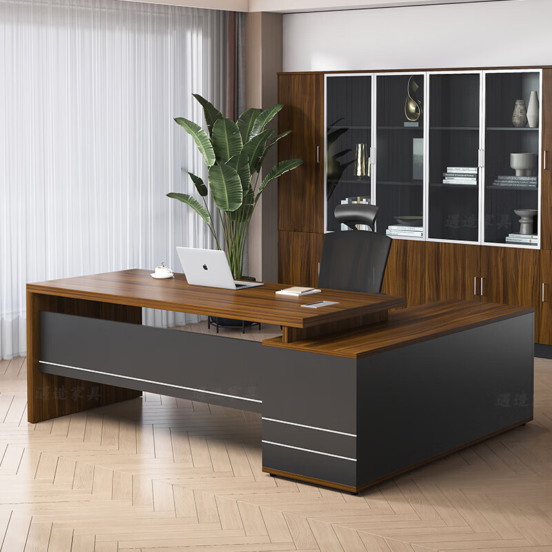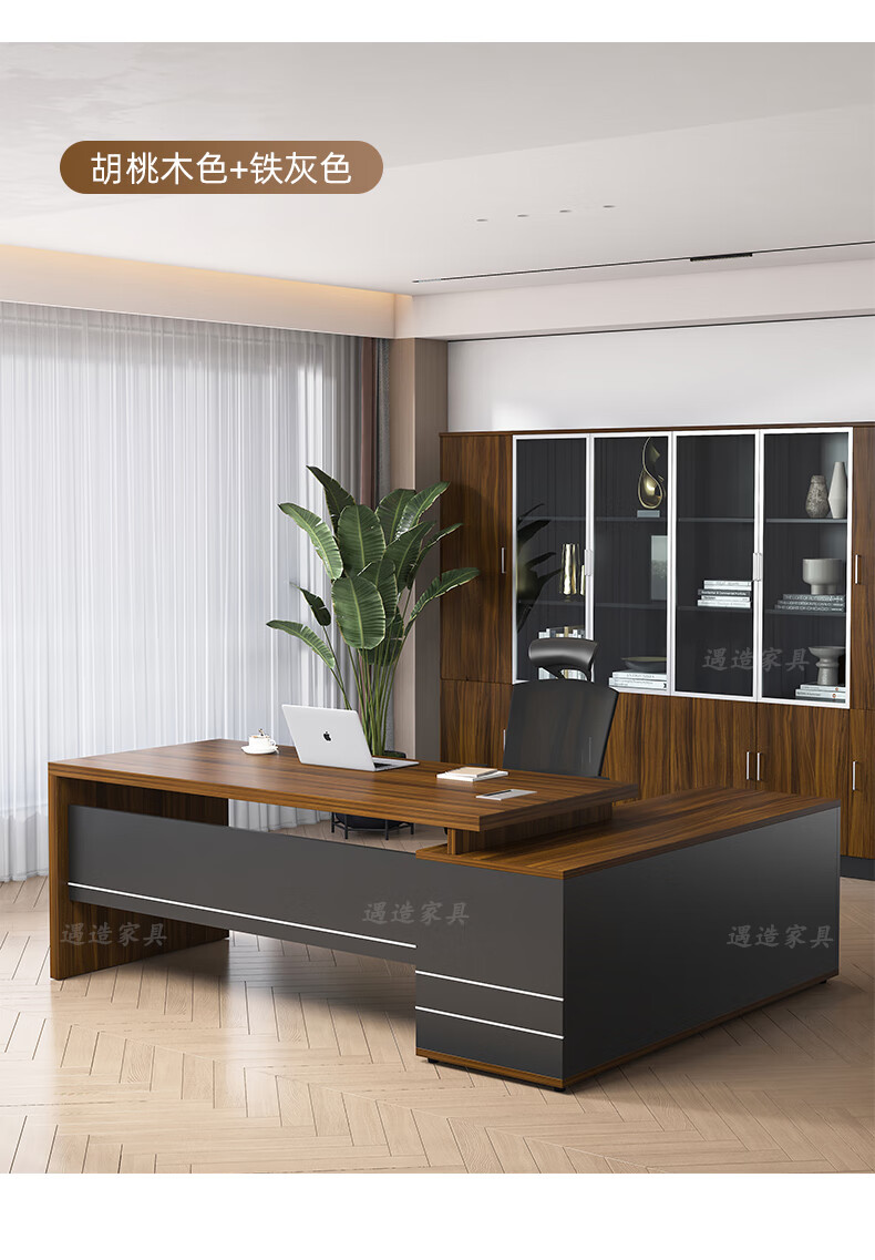 遇造办公桌老板桌现代简约单人带柜大班台经理主管桌1.8米桌胡桃+铁灰