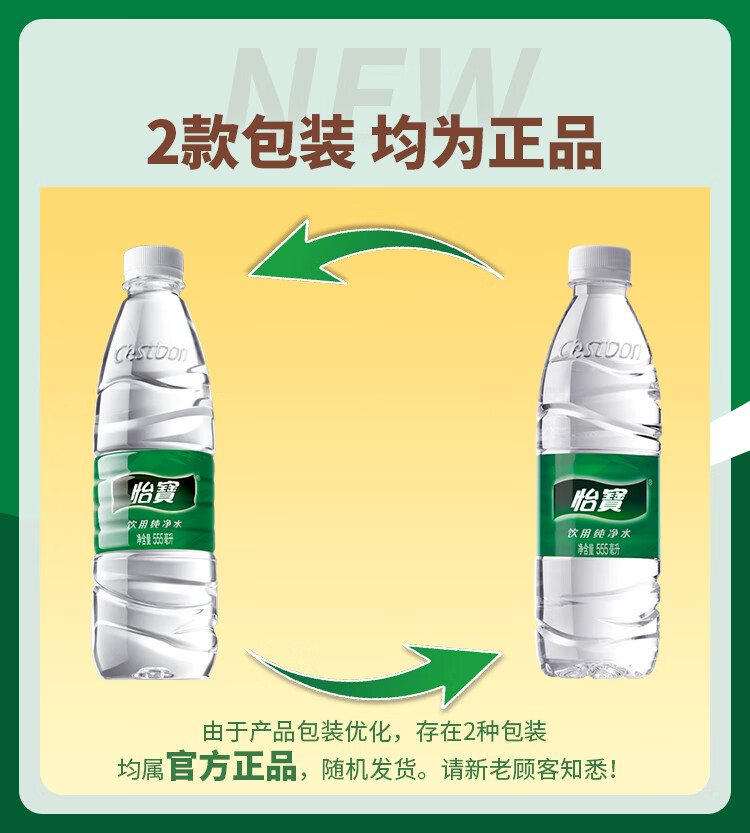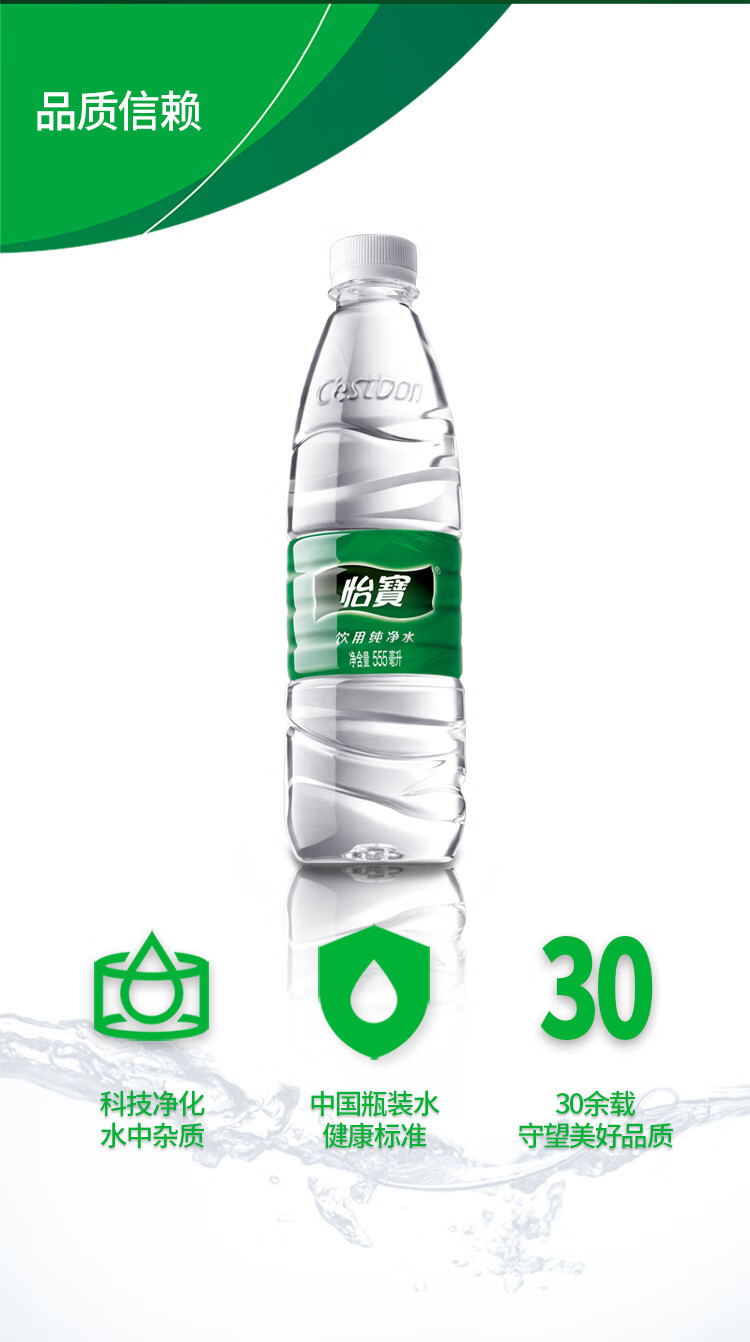 怡宝 饮用水 纯净水555ml*24瓶 整箱装
