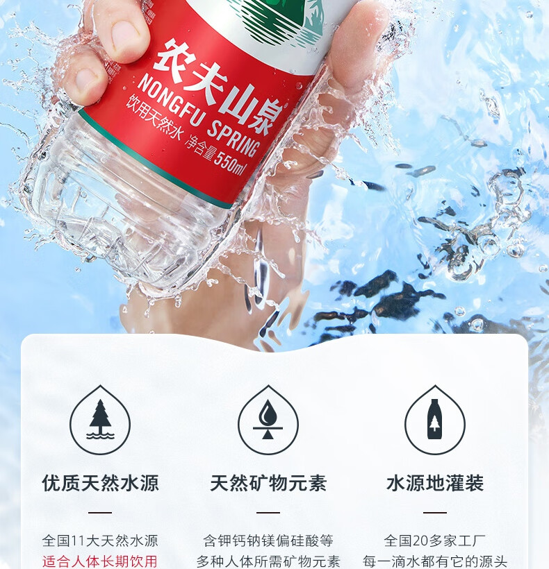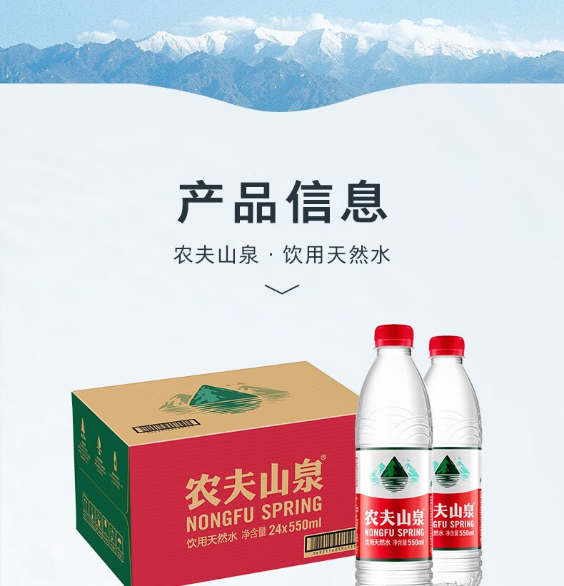 农夫山泉 饮用水 饮用天然水550ml普通装24瓶 整箱装