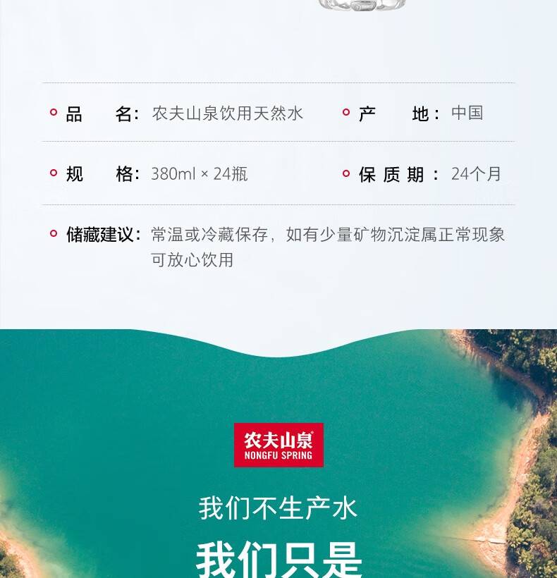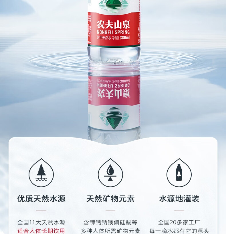 农夫山泉 饮用水 饮用天然水380ml*24瓶 整箱装