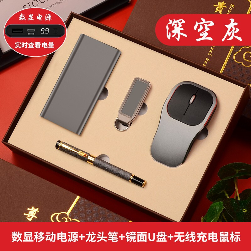 年会电子礼品、商务礼品定制、纪念品送客户、尊贵灰色电源四件套