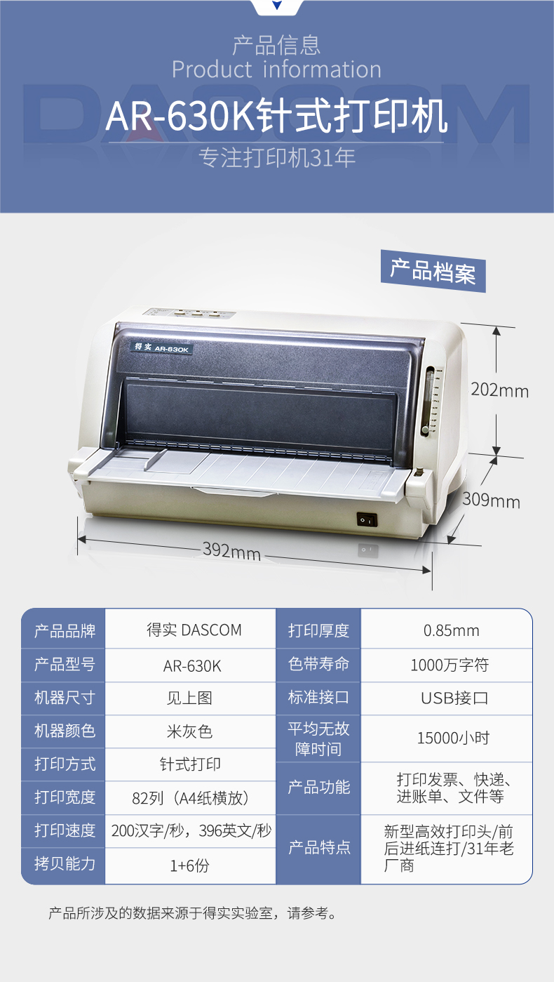 得实(Dascom)AR-630K 高效多功能针式打印机24针82列平推 出库单支持国产麒麟统信系统