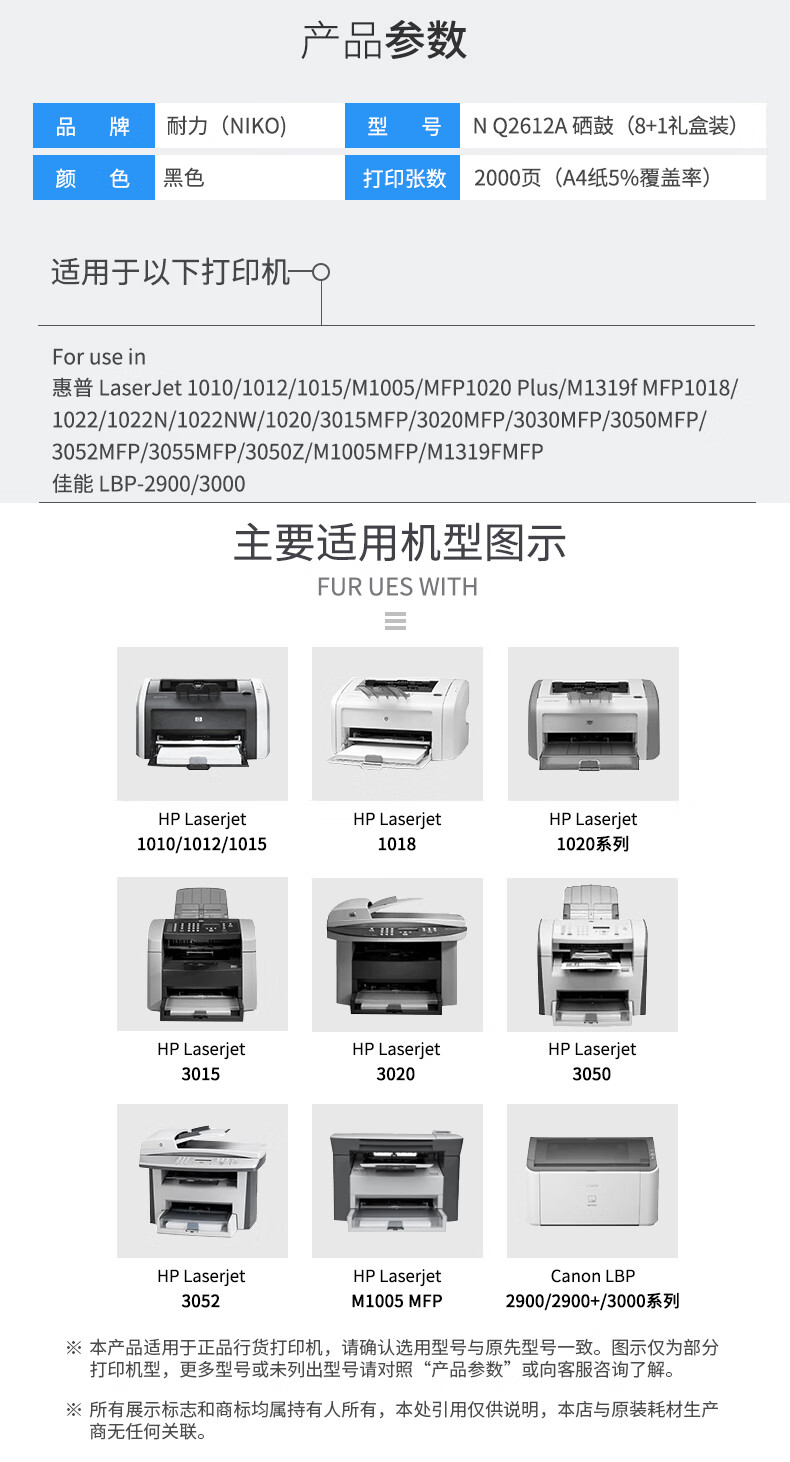 耐力(NIKO)N Q2612A 黑色硒鼓 (适用惠普 LaserJet 1010/1015/1020/3050/M1005/M1319f)