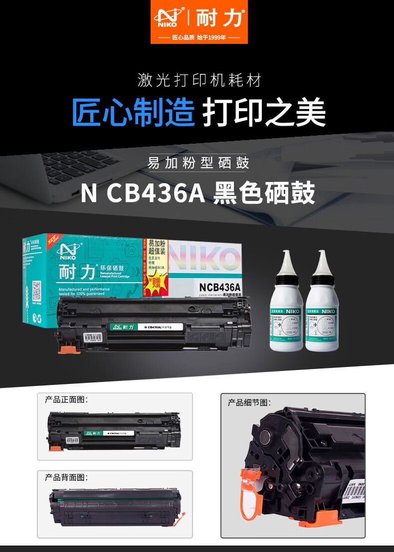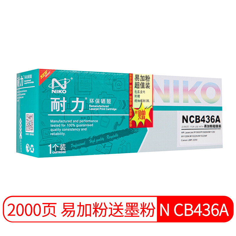 耐力(NIKO)N CB436A易加粉+2瓶墨粉 黑色硒鼓 (适用惠普 LaserJet P1505N/M1522N/M1120,佳能 LBP-3250)